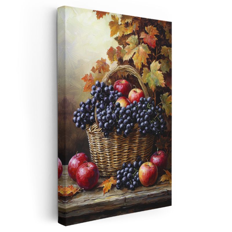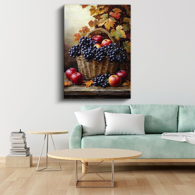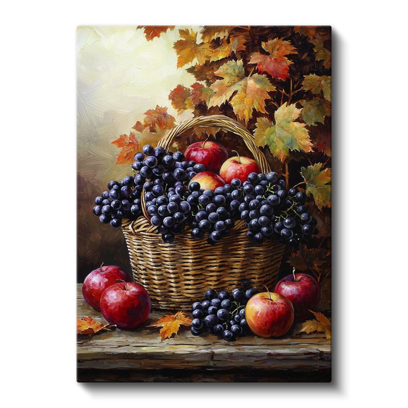 Sonbahar Hasadı - Üzüm ve Elma Sepeti Kanvas Tablo