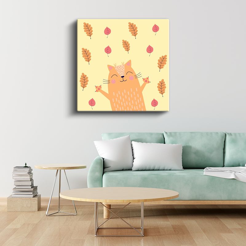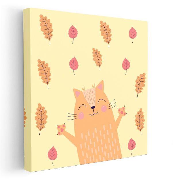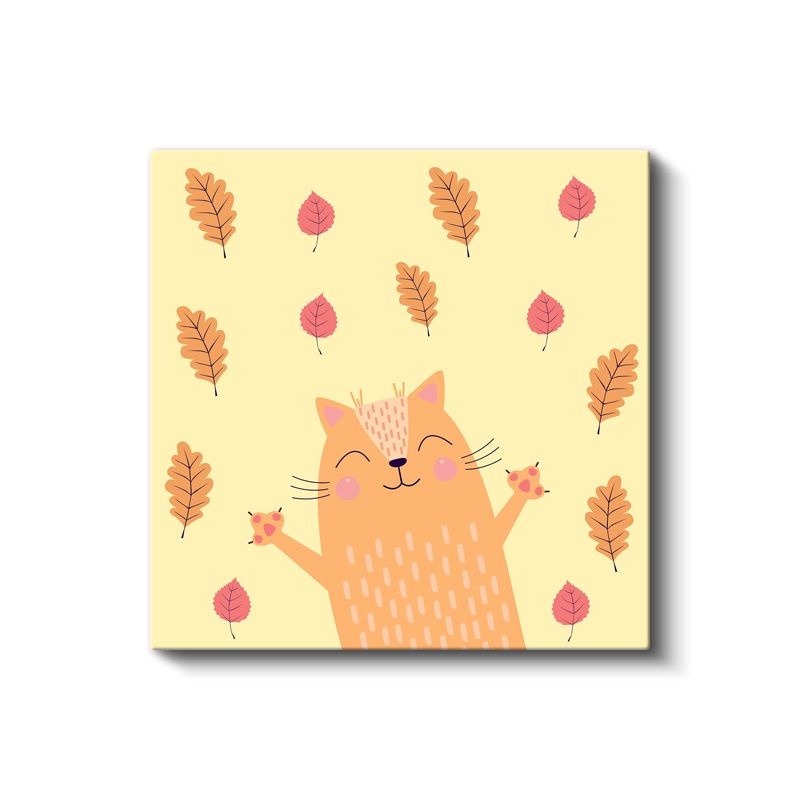 Sonbahar Kedisi - Yapraklar Arasında Mutlu Dostumuz Kanvas Tablo