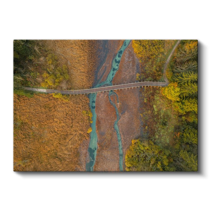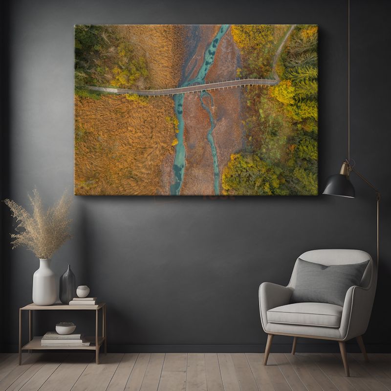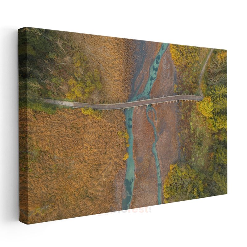Sonbahar Köprüsü - Turkuaz Nehir Üzerinde Havadan Görünüm Kanvas Tablo