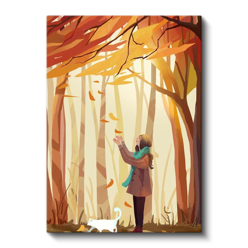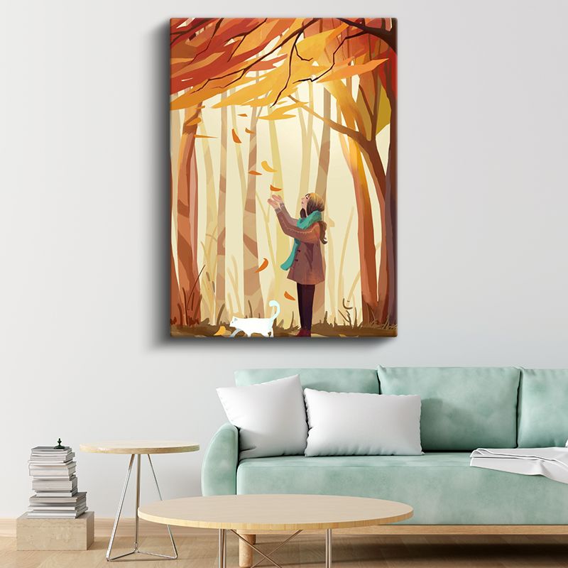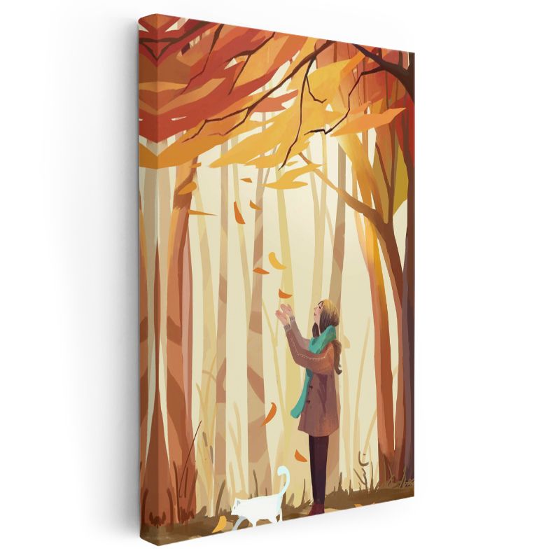 Sonbahar Macerası - Yaprak Dansı ve Minik Dostlar Kanvas Tablo