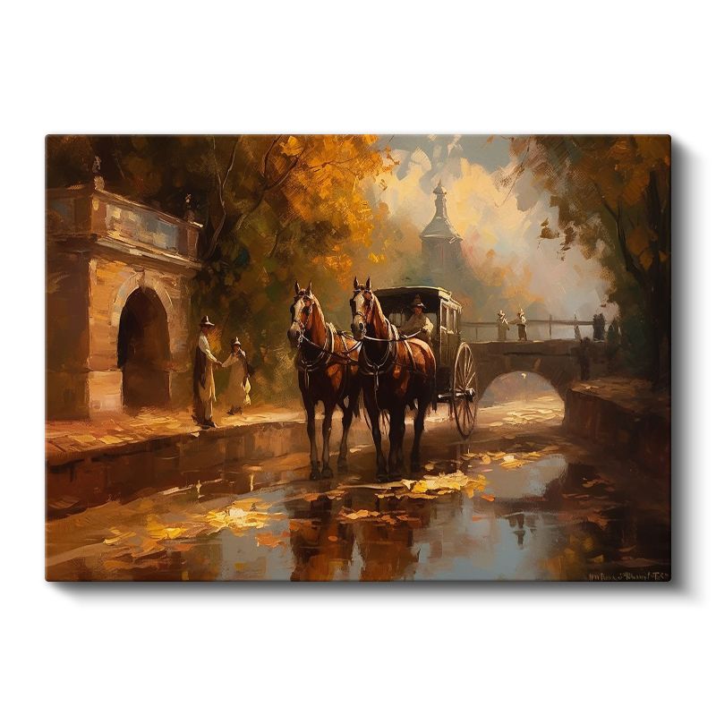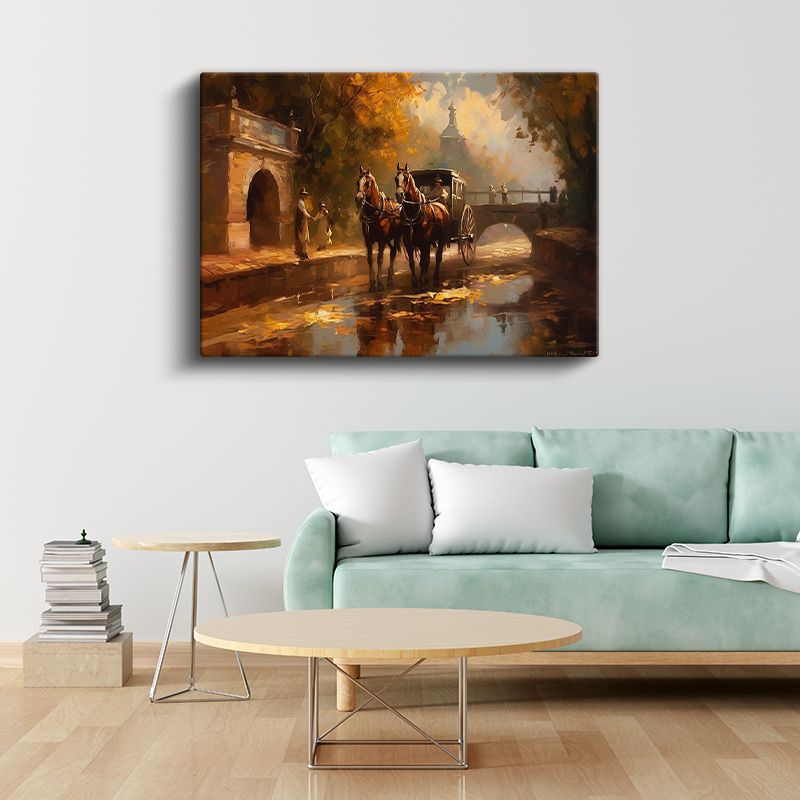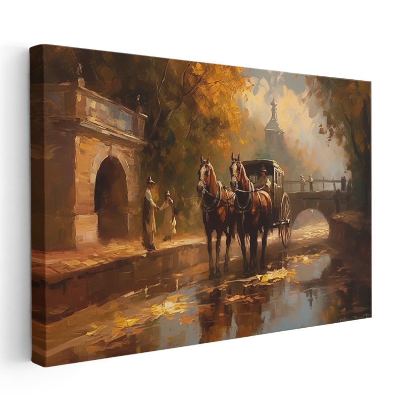 Sonbahar Manzarası - Atlı Araba Kanvas Tablo