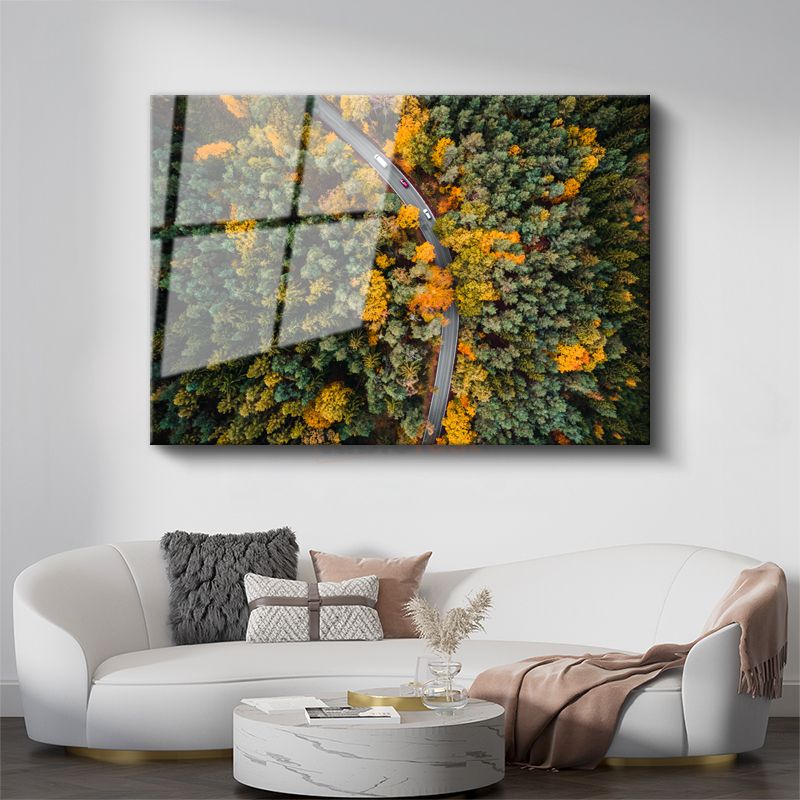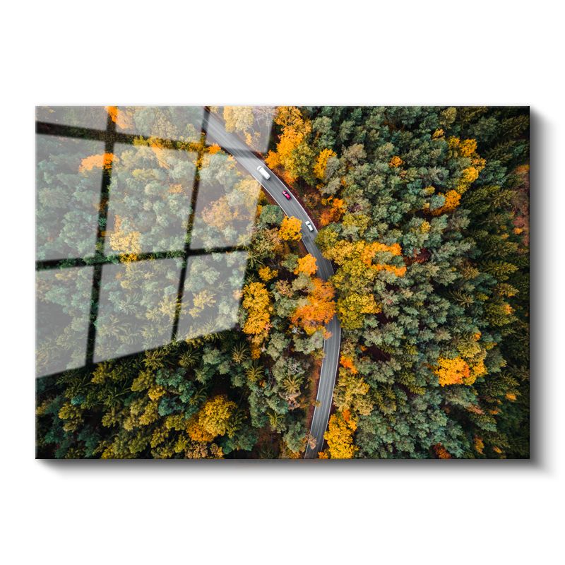 Sonbahar Ormanı - Havadan Görünüm Cam Tablo