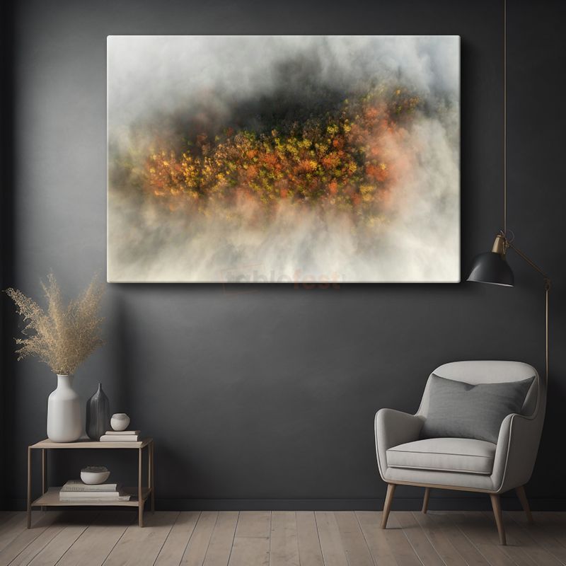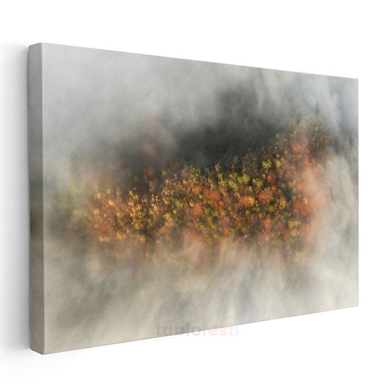 Sonbahar Ormanı - Sis Arasında Parlayan Renkler Kanvas Tablo