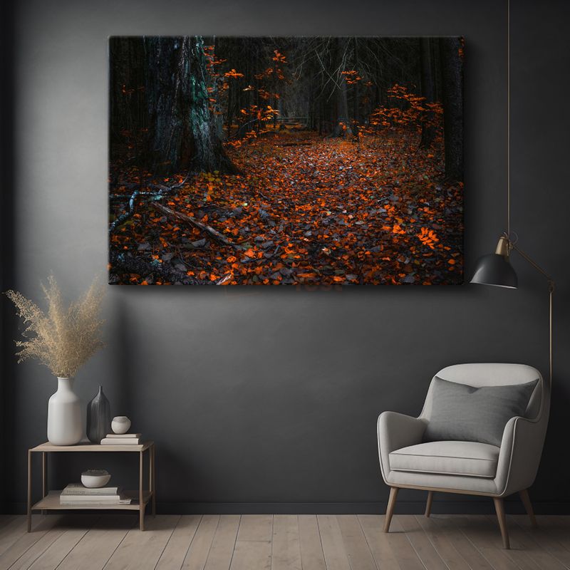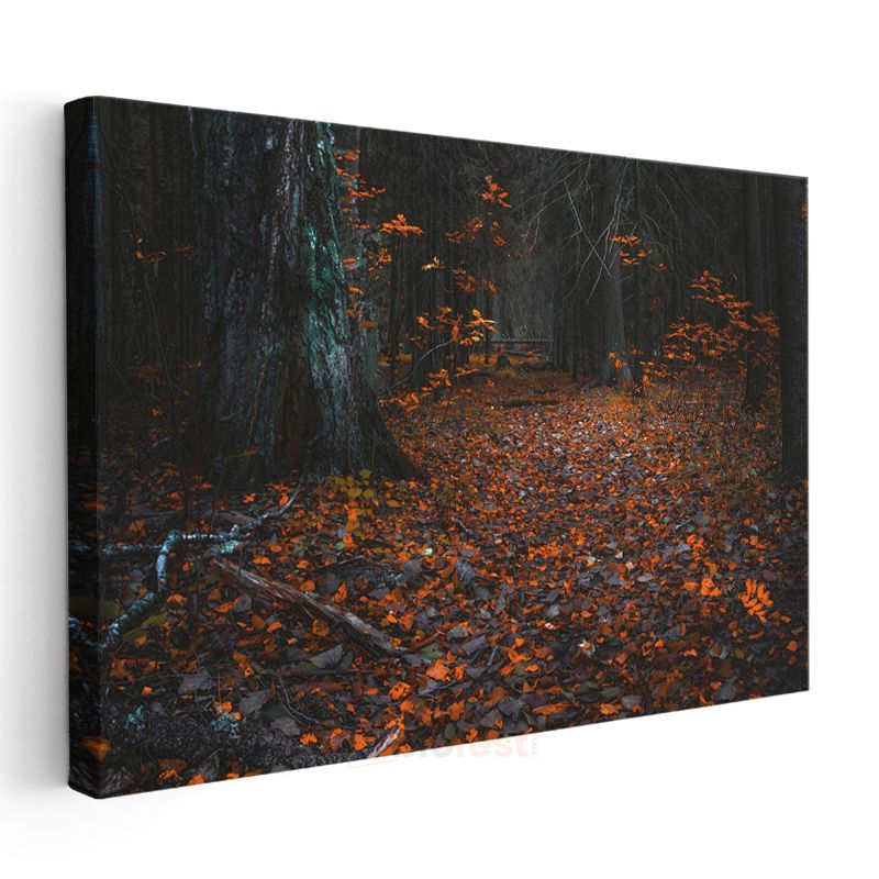 Sonbahar Ormanı - Turuncu Yaprak Halısı Kanvas Tablo