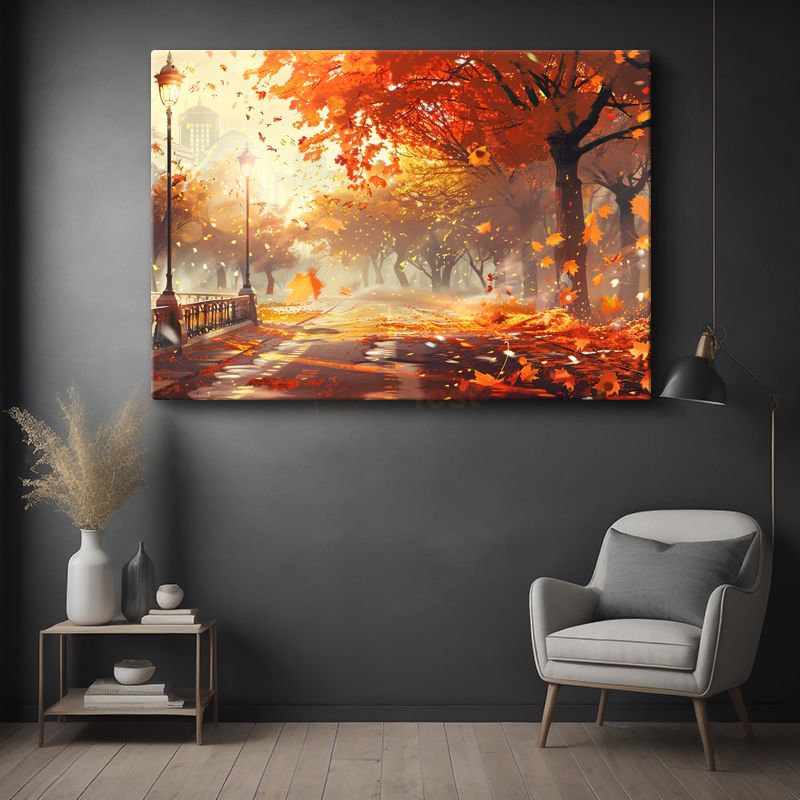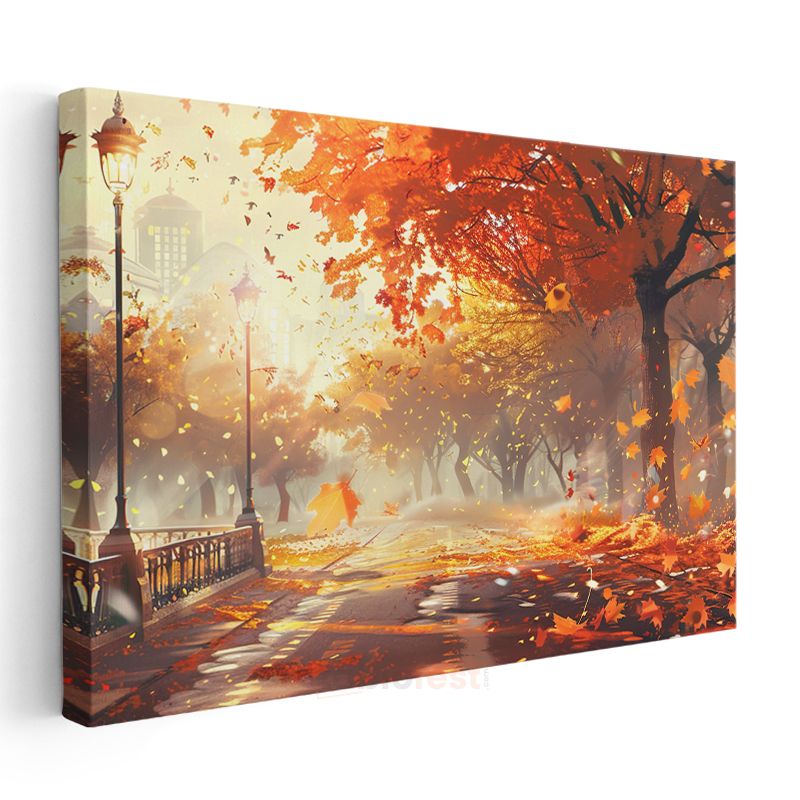 Sonbahar Parkı - Altın Yaprakların Dansı Kanvas Tablo