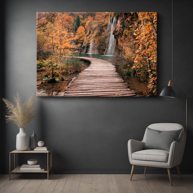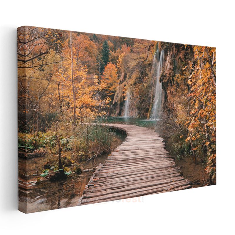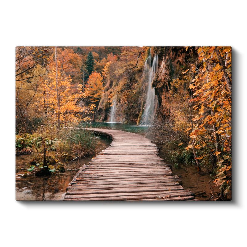 Sonbahar Patikası - Şelaleler ve Altın Yapraklar Arasında Yürüyüş Kanvas Tablo