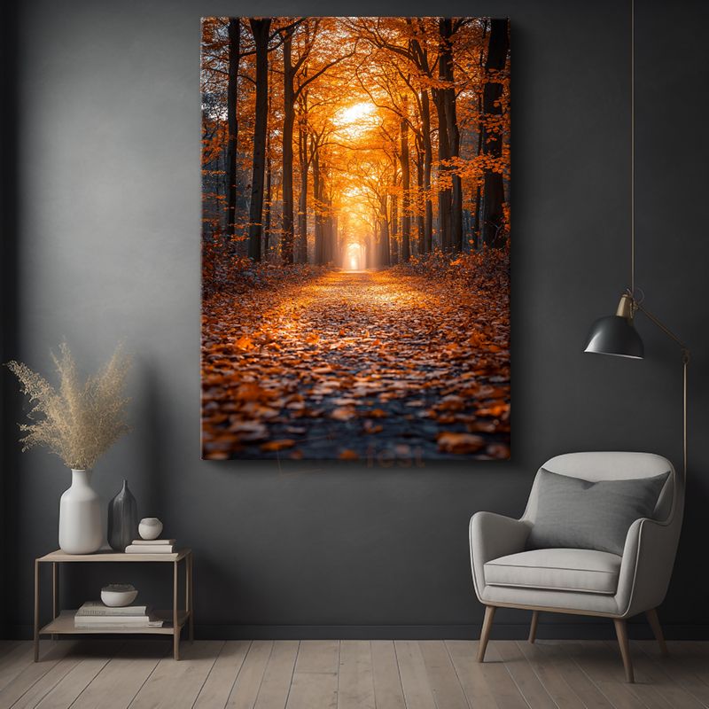 Sonbahar Patikası - Turuncu Yaprakların Büyülü Koridoru Kanvas Tablo