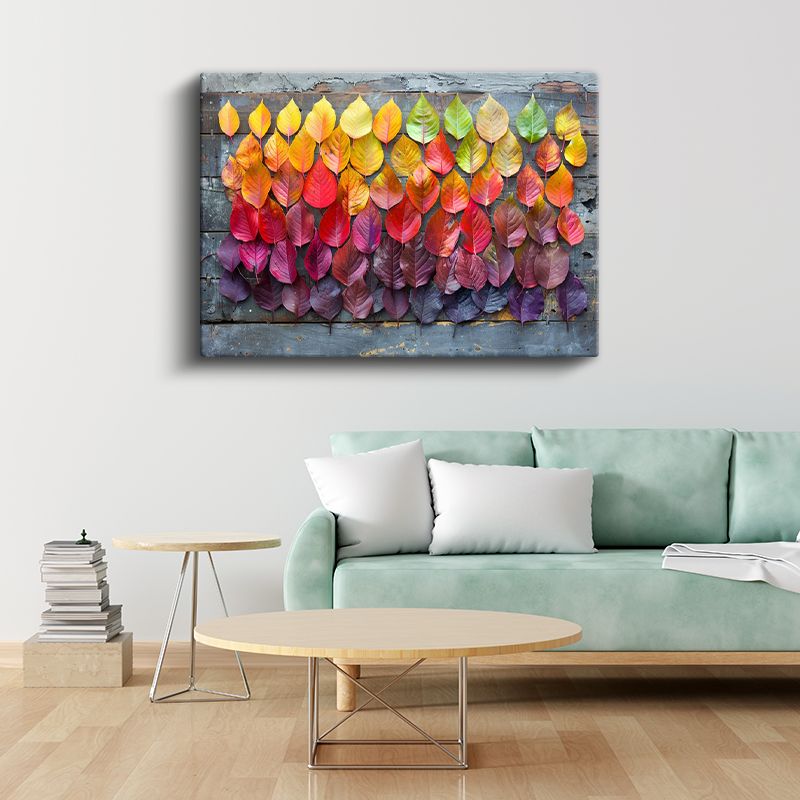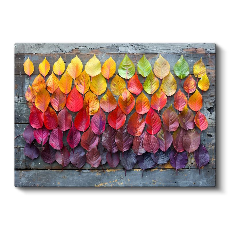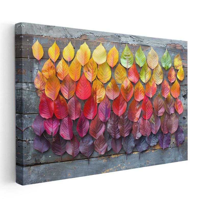 Sonbahar Renkleri - Degrade Yaprak Dizilimi Kanvas Tablo