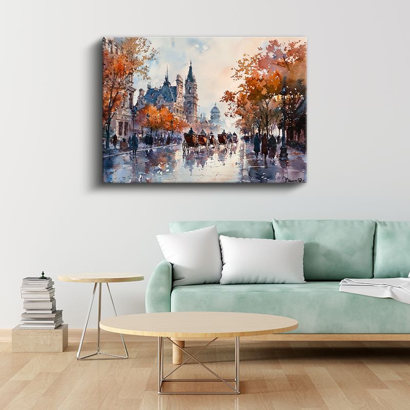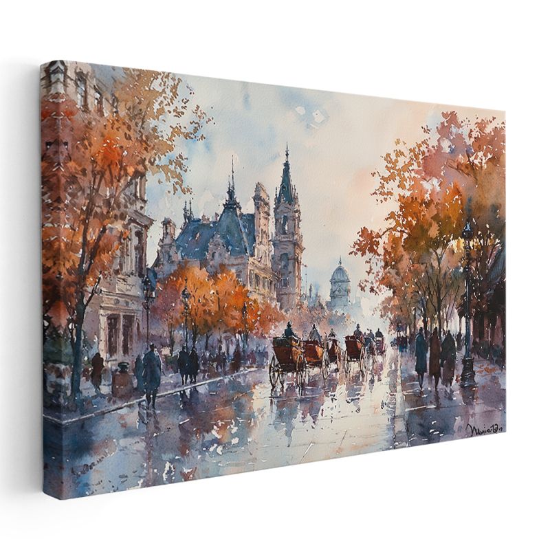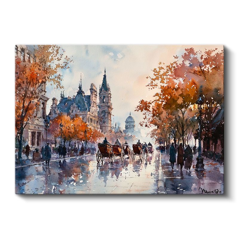 Sonbahar Sokağı - Atlı Arabalar ve Tarihi Yapılar Kanvas Tablo