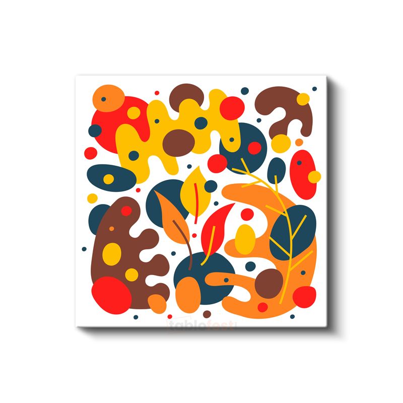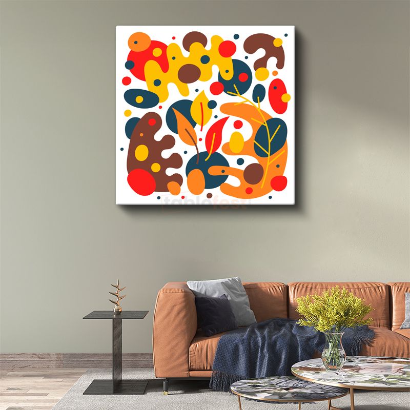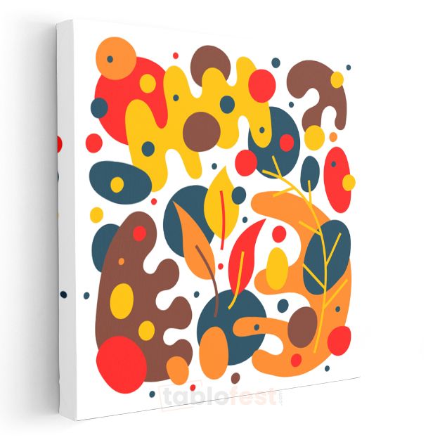 Sonbahar Soyut Kompozisyon - Organik Formlar ve Yapraklar Kanvas Tablo