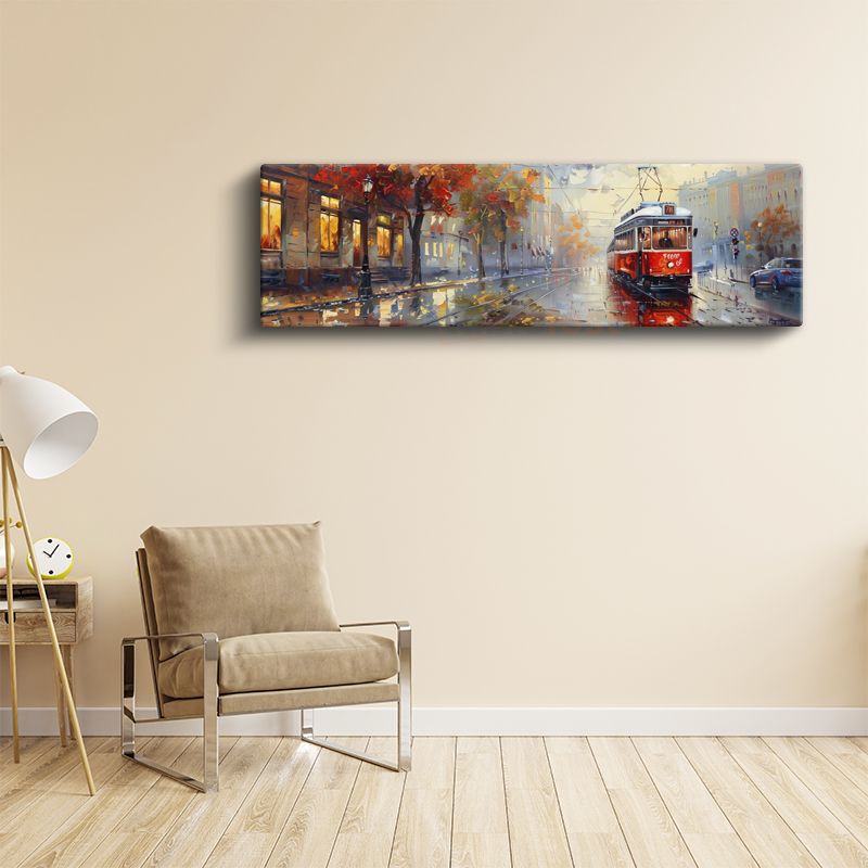 Sonbahar Tramvayı - Işıklı Cadde Yansımaları Kanvas Tablo
