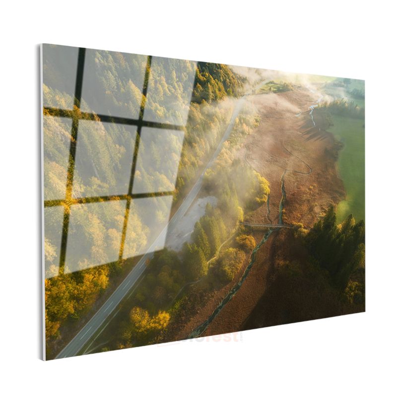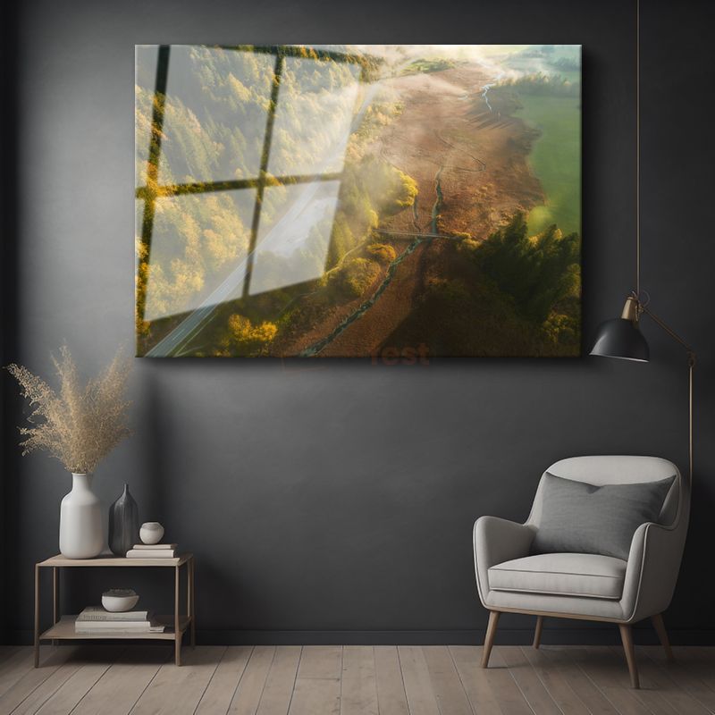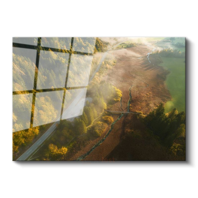 Sonbahar Vadisi - Altın Renkli Orman ve Dere Manzarası Cam Tablo