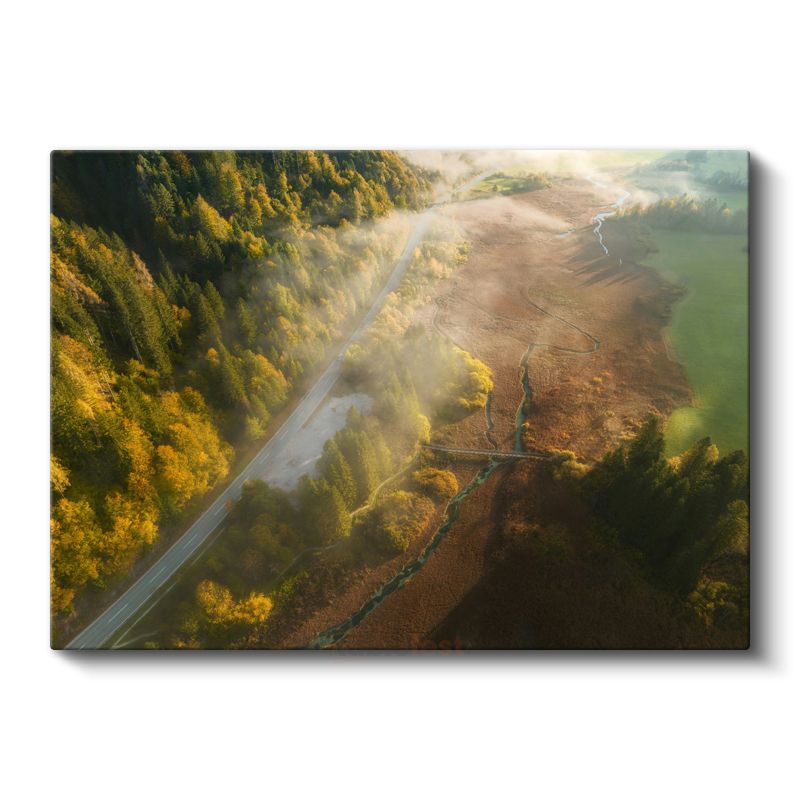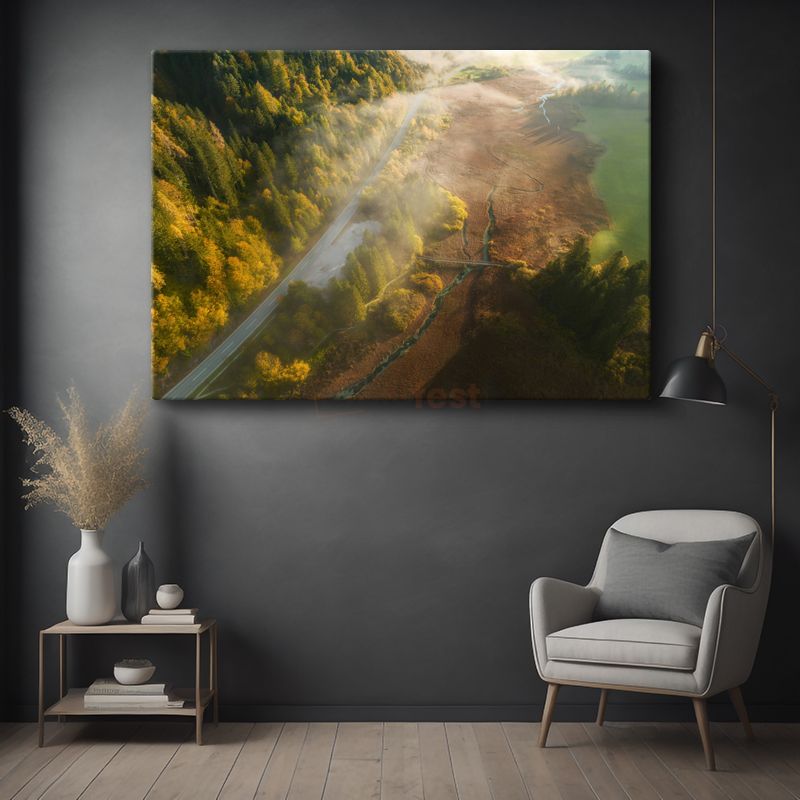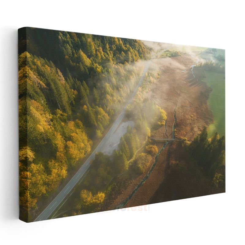 Sonbahar Vadisi - Altın Renkli Orman ve Dere Manzarası Kanvas Tablo
