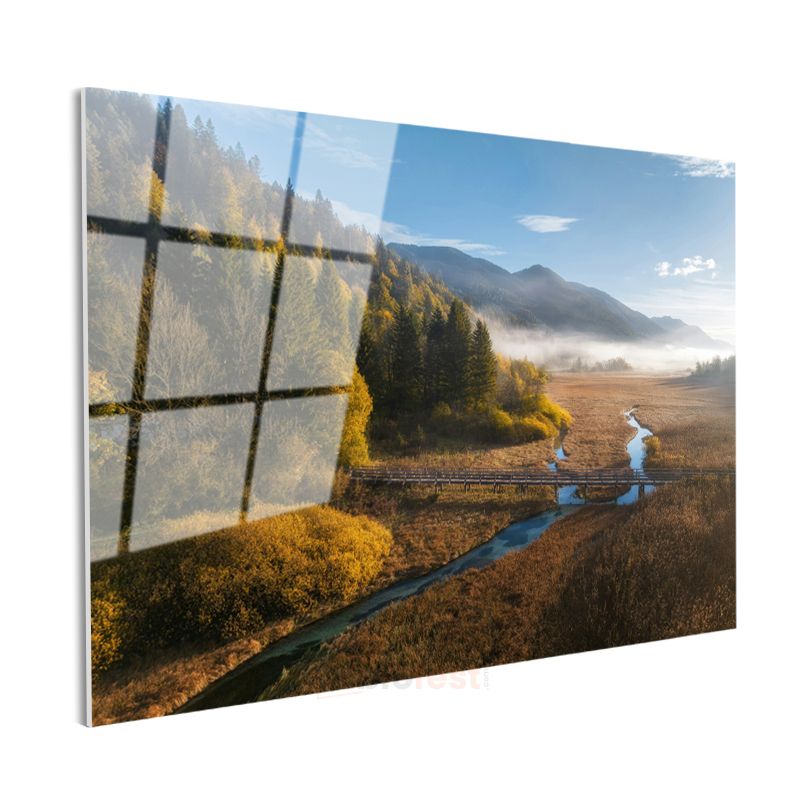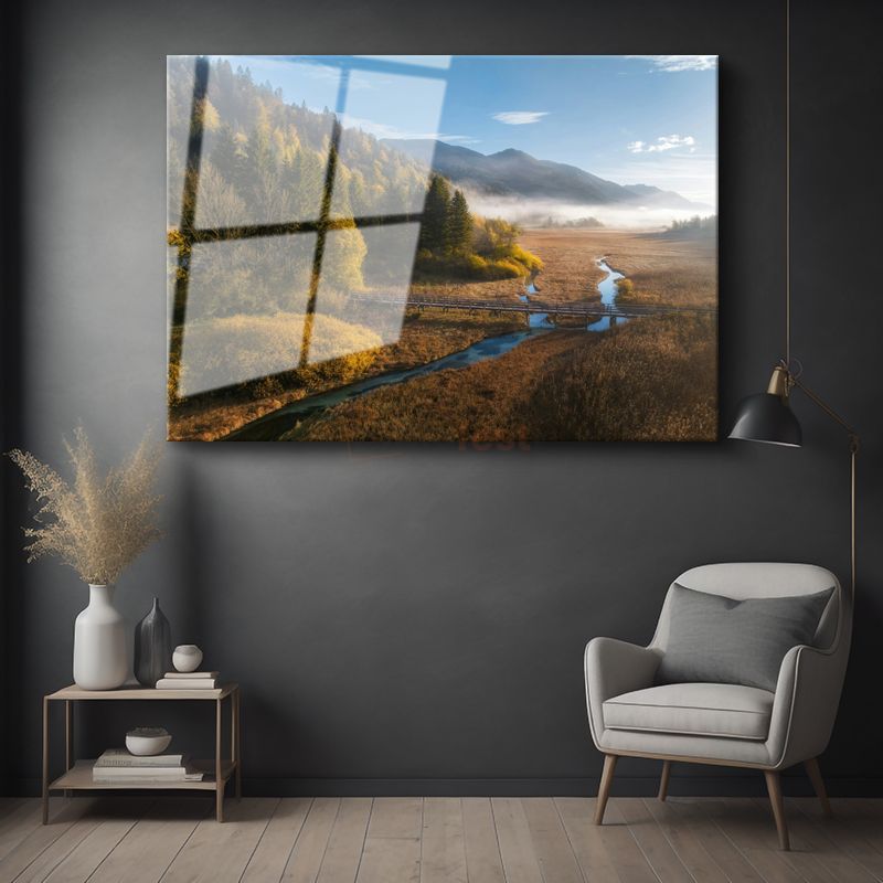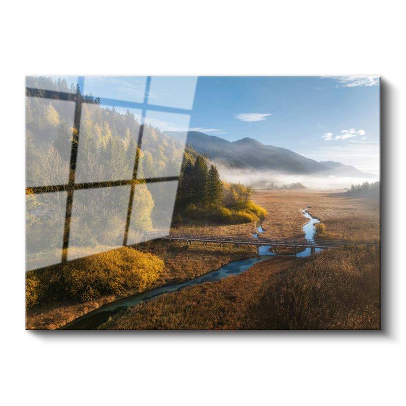 Sonbahar Vadisi - Altın Yapraklı Orman Cam Tablo