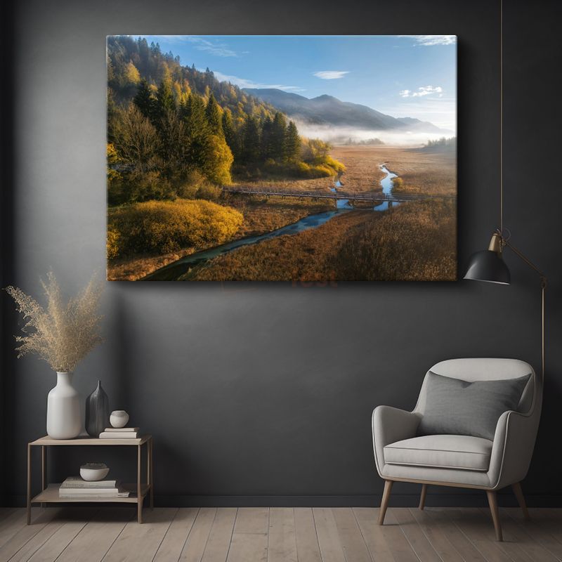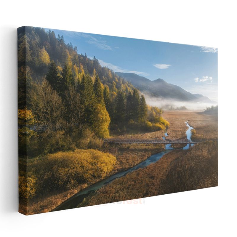 Sonbahar Vadisi - Altın Yapraklı Orman Kanvas Tablo