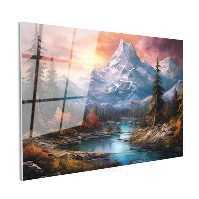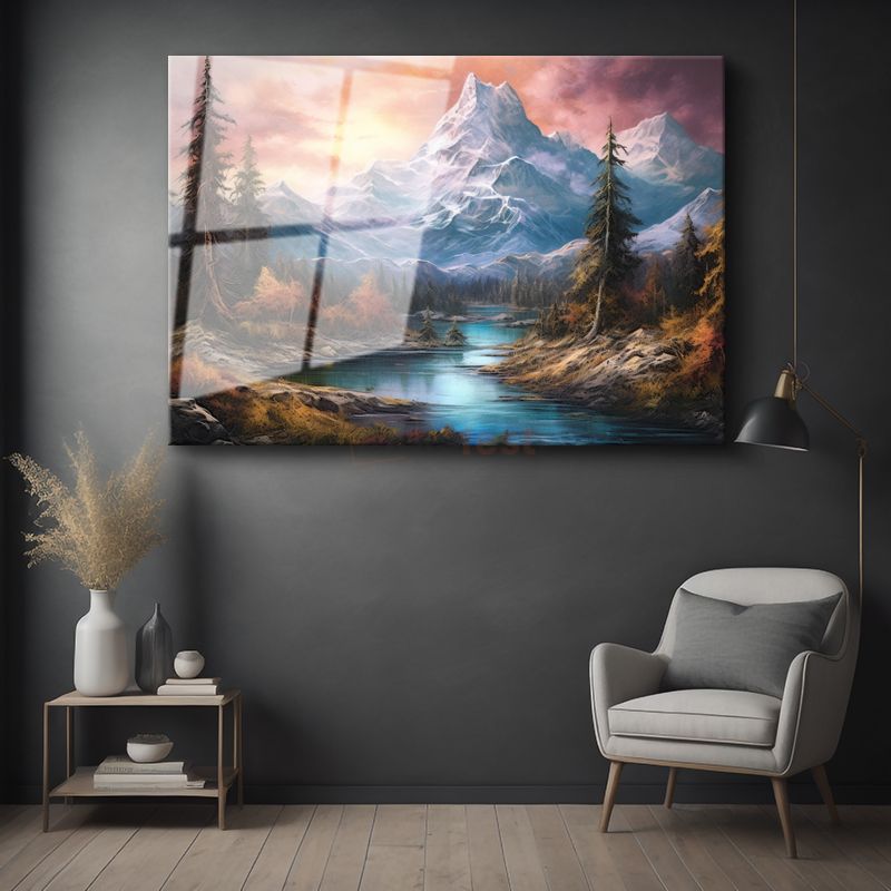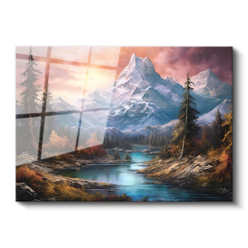 Sonbahar Vadisi - Karlı Dağ Zirvesi Cam Tablo