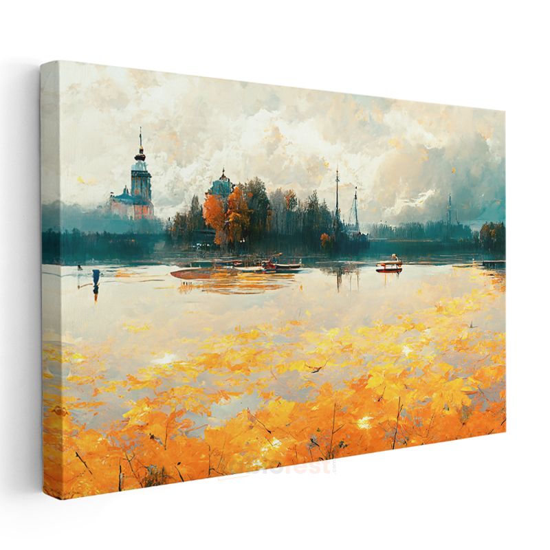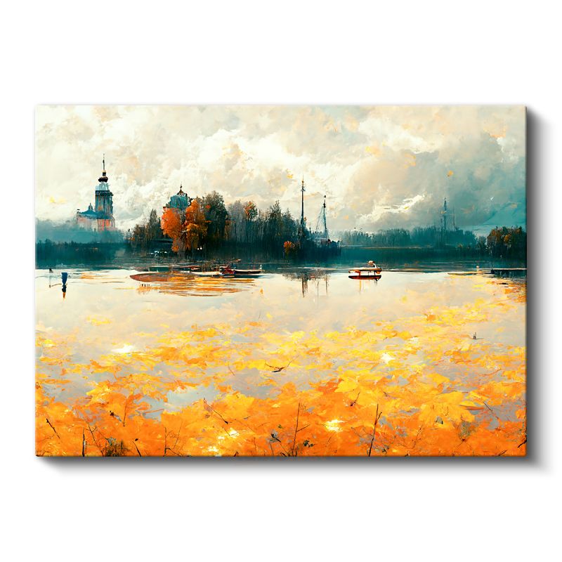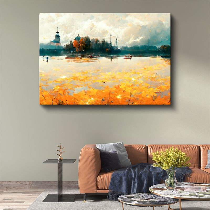 Sonbahar Yansıması - Turuncu Göl Manzarası Kanvas Tablo