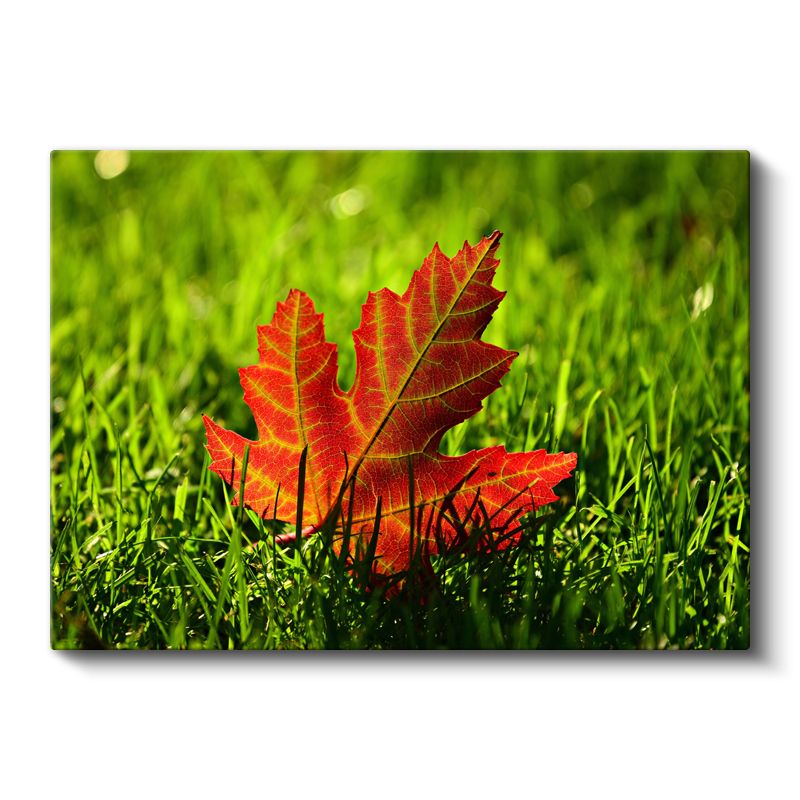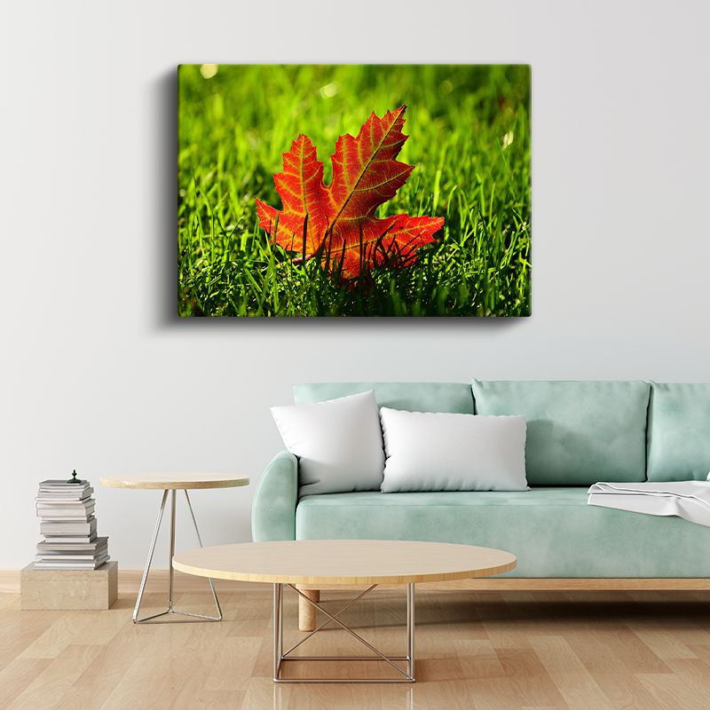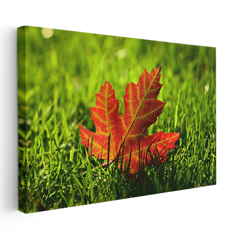 Sonbahar Yaprağı - Çimen Üzerinde Kızıl Detaylar Kanvas Tablo