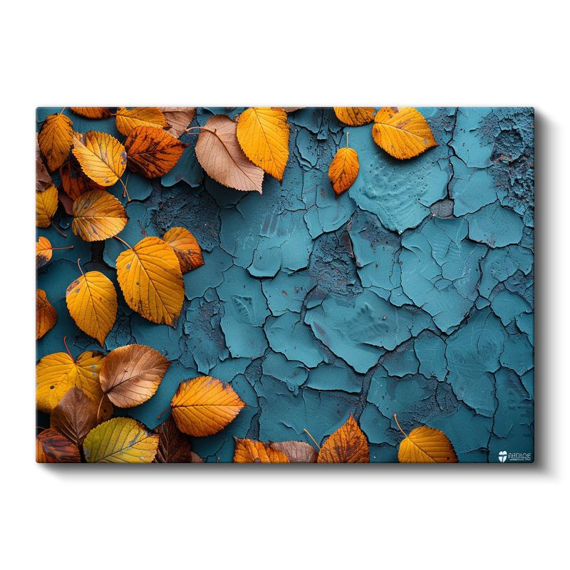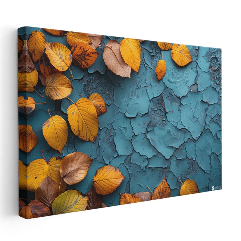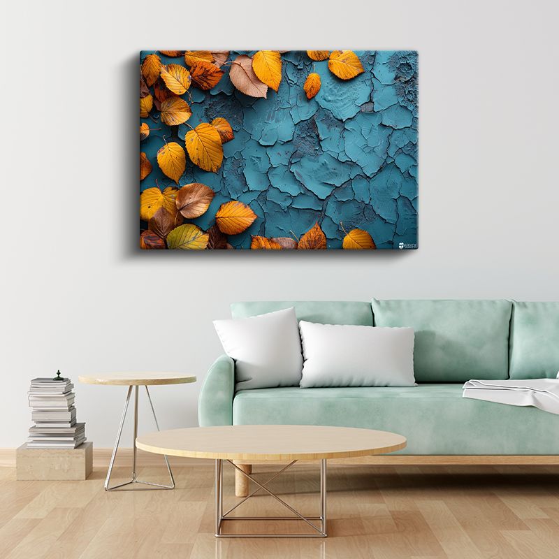 Sonbahar Yaprakları - Mavi Dokulu Zeminde Kontrast Kanvas Tablo