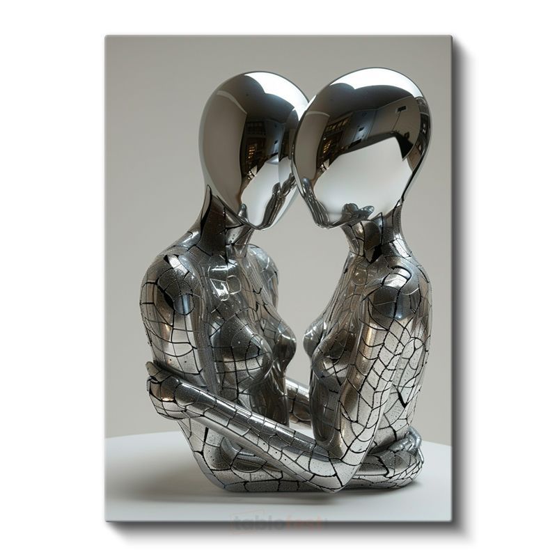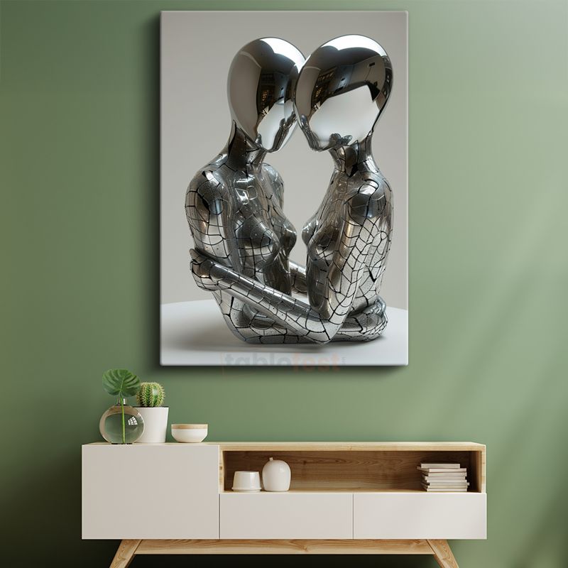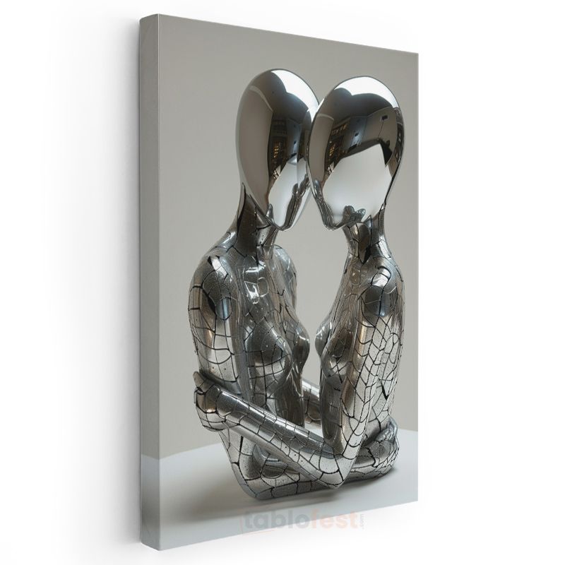Sonsuz Bağ - Gümüş Metalik Figürler Kanvas Tablo