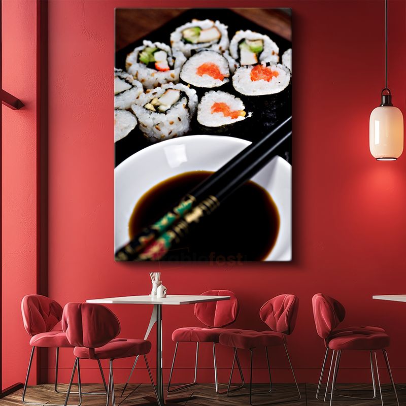 Soya Sosu - Geleneksel Suşi Tabağı Kanvas Tablo