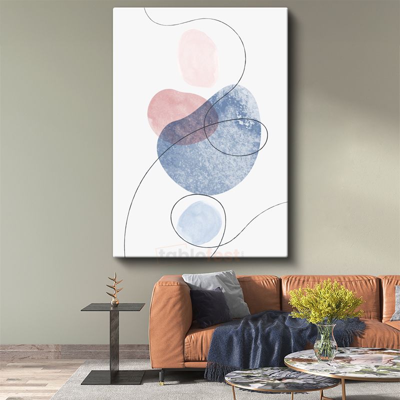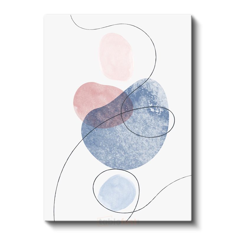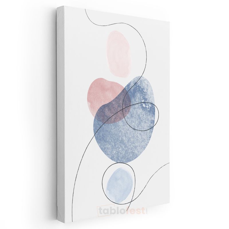 Soyut Akışkanlık - Pastel Mavi Pembe Çemberler Kanvas Tablo