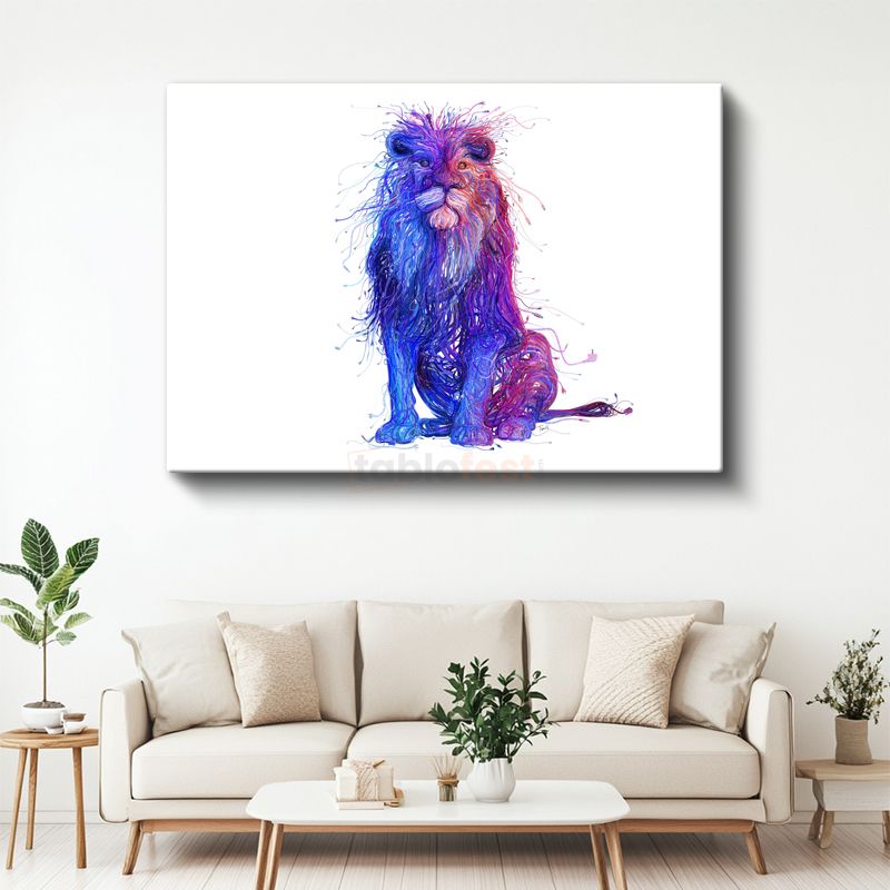 Soyut Aslan - Mavi Mor Tonlarda Sanatsal Yele Detaylı Kanvas Tablo