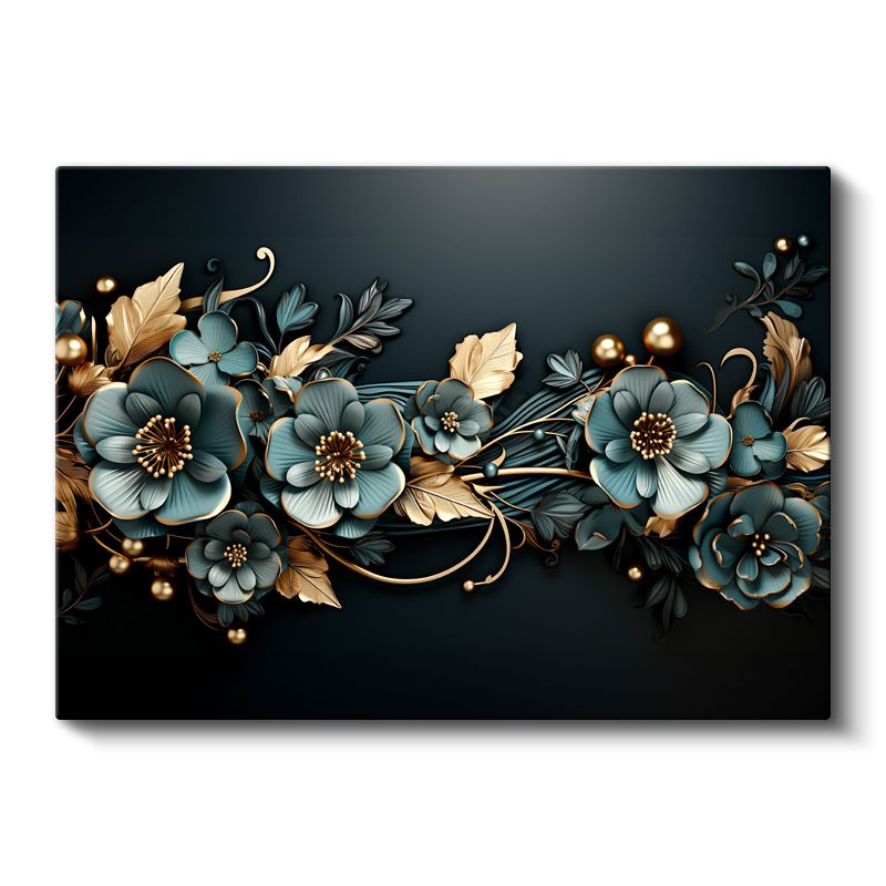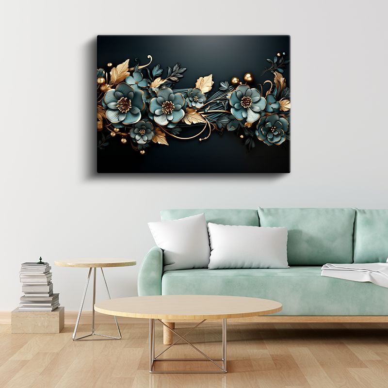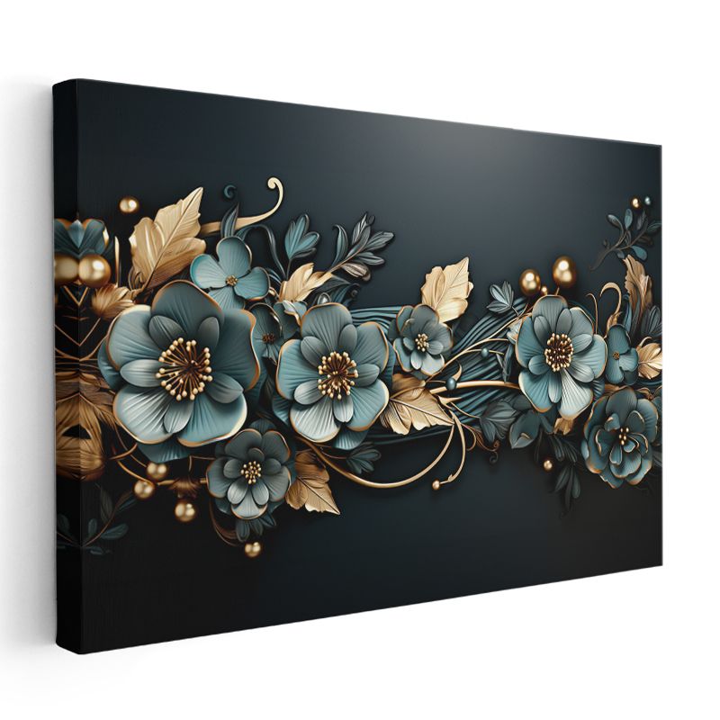 Soyut Çiçekler - Yeşil Altın Tonlu Modern Tasarım Kanvas Tablo