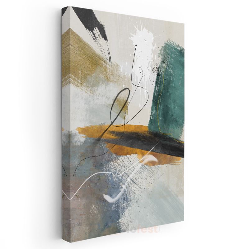 Soyut Denge - Turkuaz ve Altın Fırça Darbeleri Kanvas Tablo