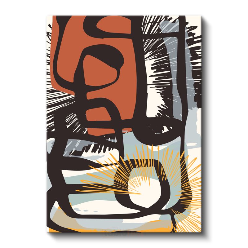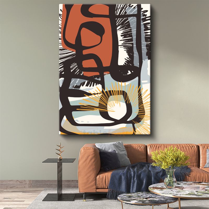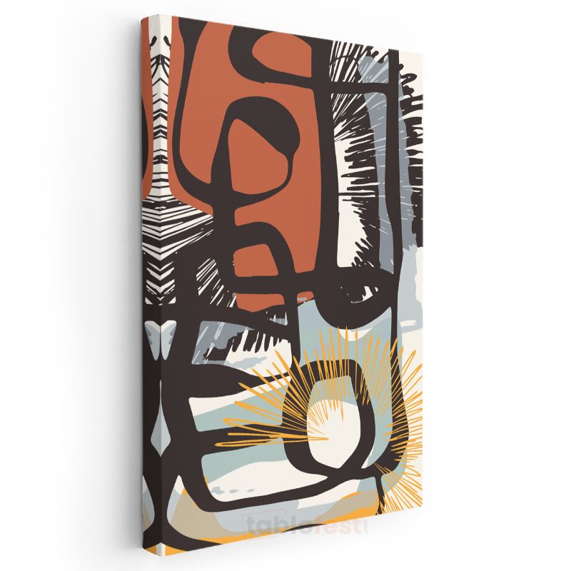 Soyut Formlar - Turuncu ve Siyah Çizgilerle Modern Kompozisyon Kanvas Tablo