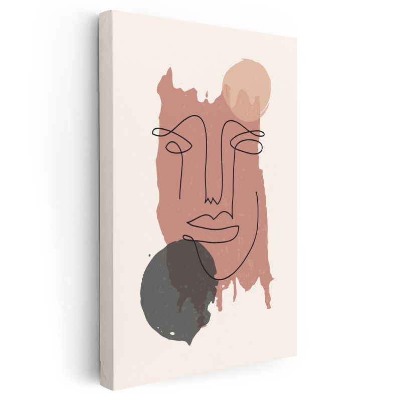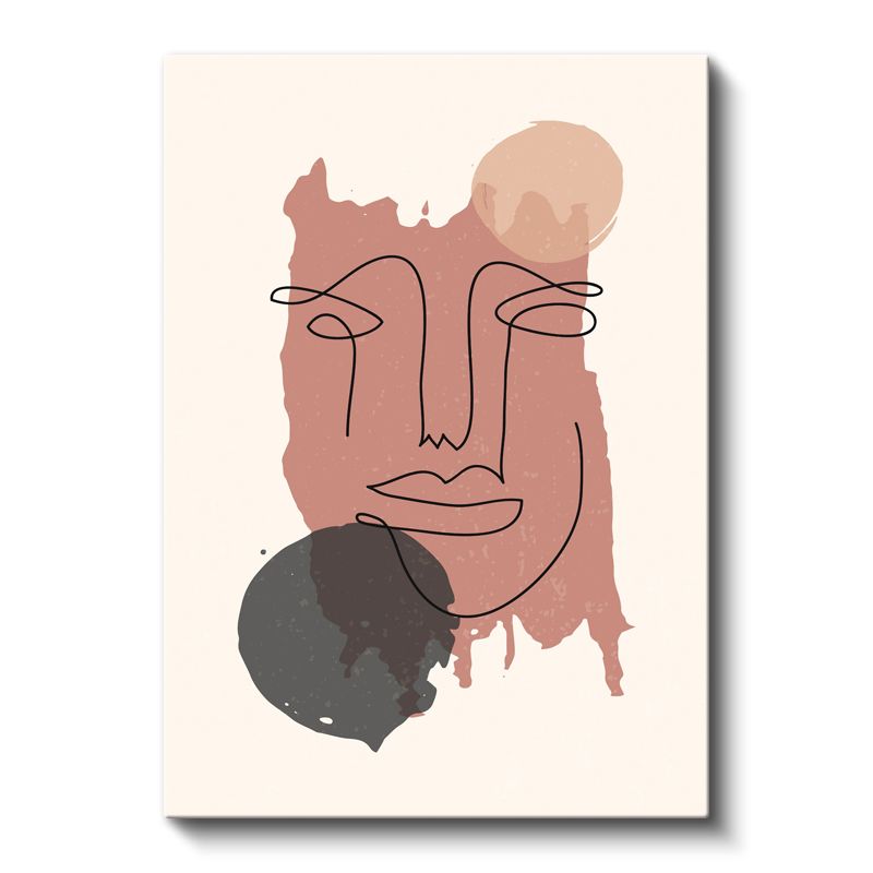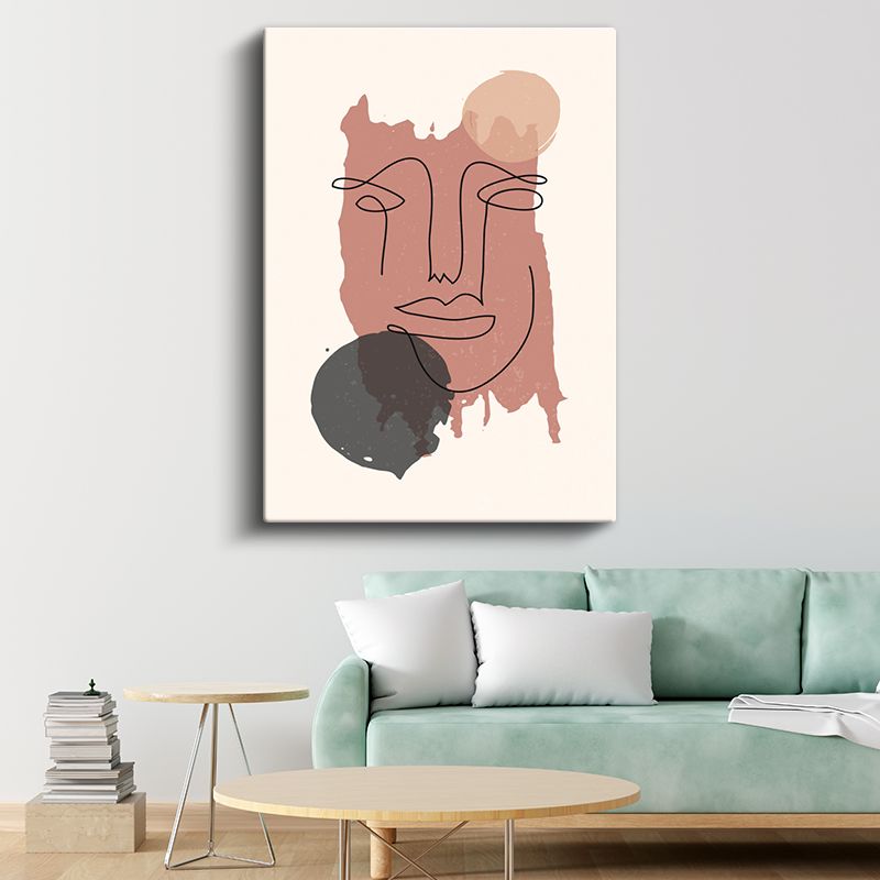 Soyut Kimlik - Pembe Tonlarda Çizgisel Portre Kanvas Tablo