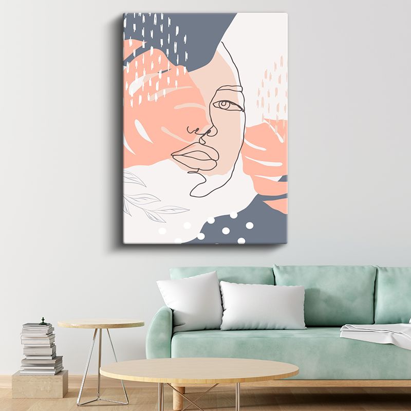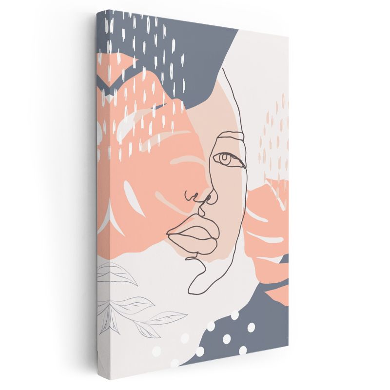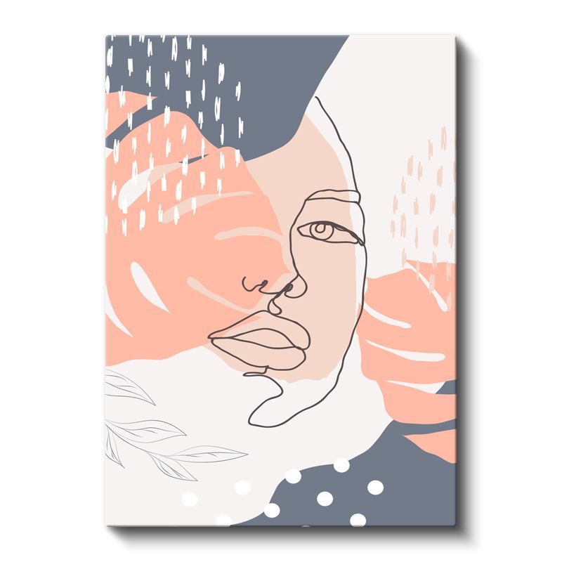 Soyut Kompozisyon - Pembe Gri Tonlarda Çizgisel Portre Kanvas Tablo