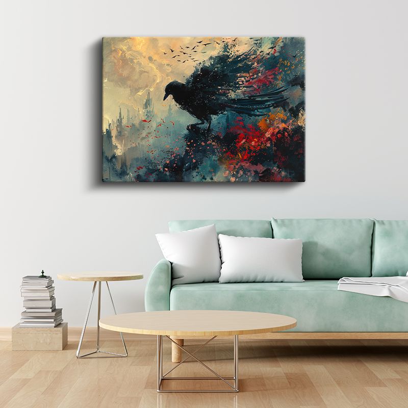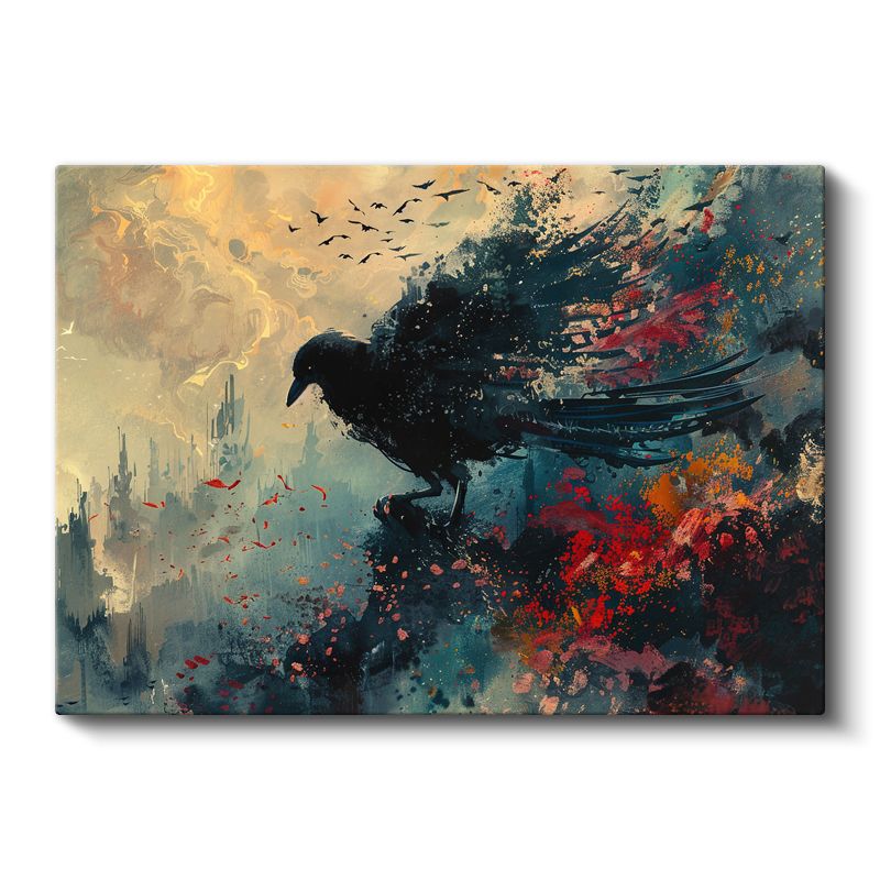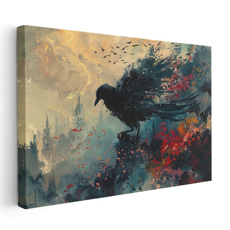 Soyut Kuzgun - Renklerin Kanatlarında Uçan Karanlık Haberci Kanvas Tablo