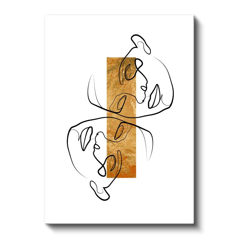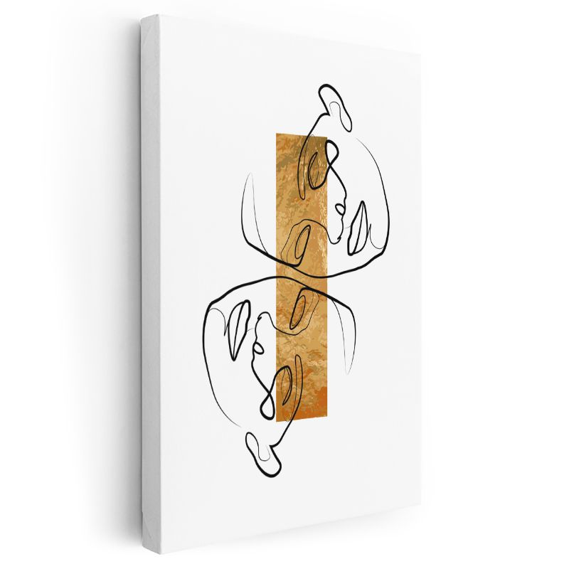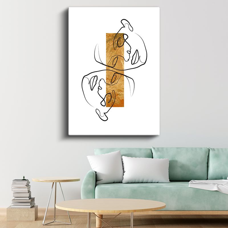Soyut Portre - Altın Çizgi ve Minimalist Yüz İfadesi Kanvas Tablo