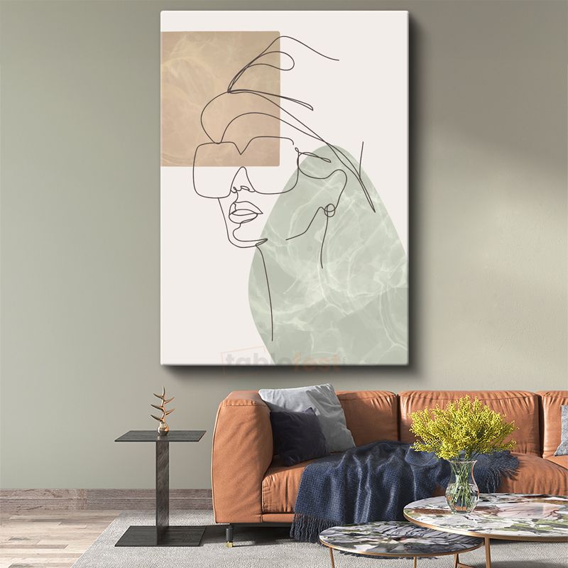 Soyut Portre - Tek Çizgi Tekniğiyle Modern Yüz Kanvas Tablo