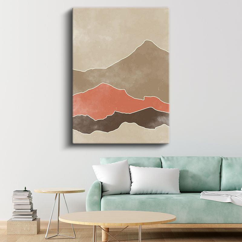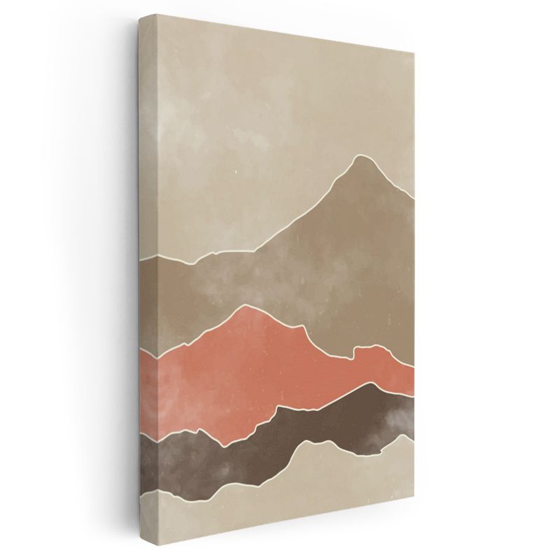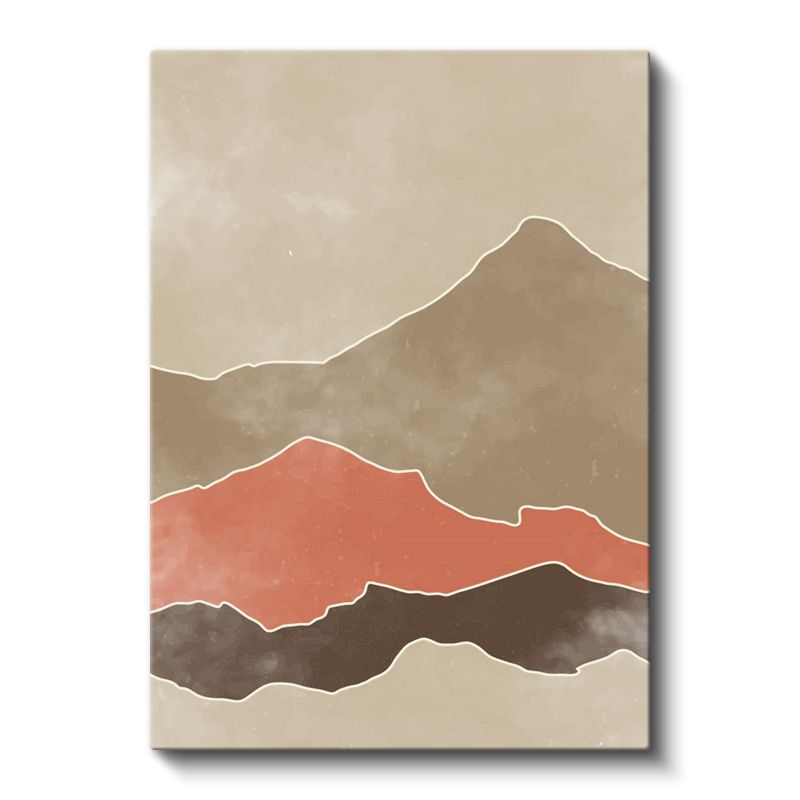 Soyut Silüetler - Toprak Tonlarında Katmanlı Dağ Kanvas Tablo