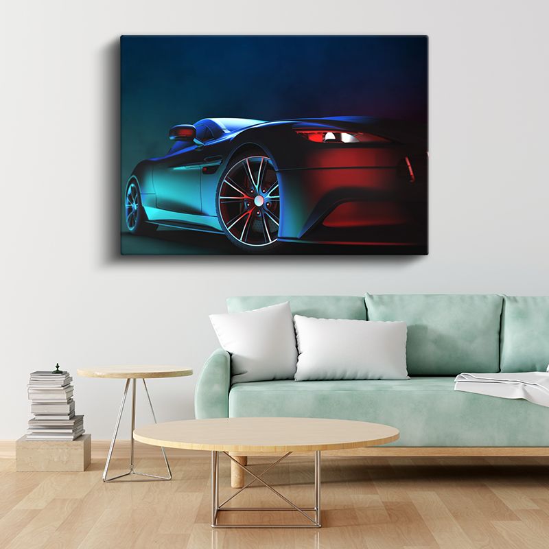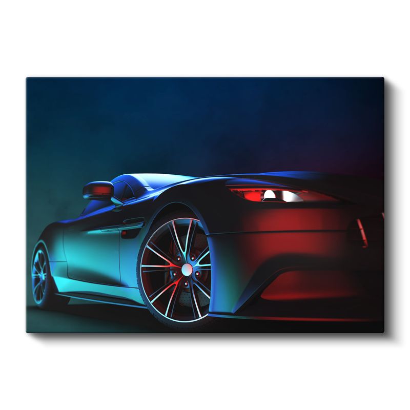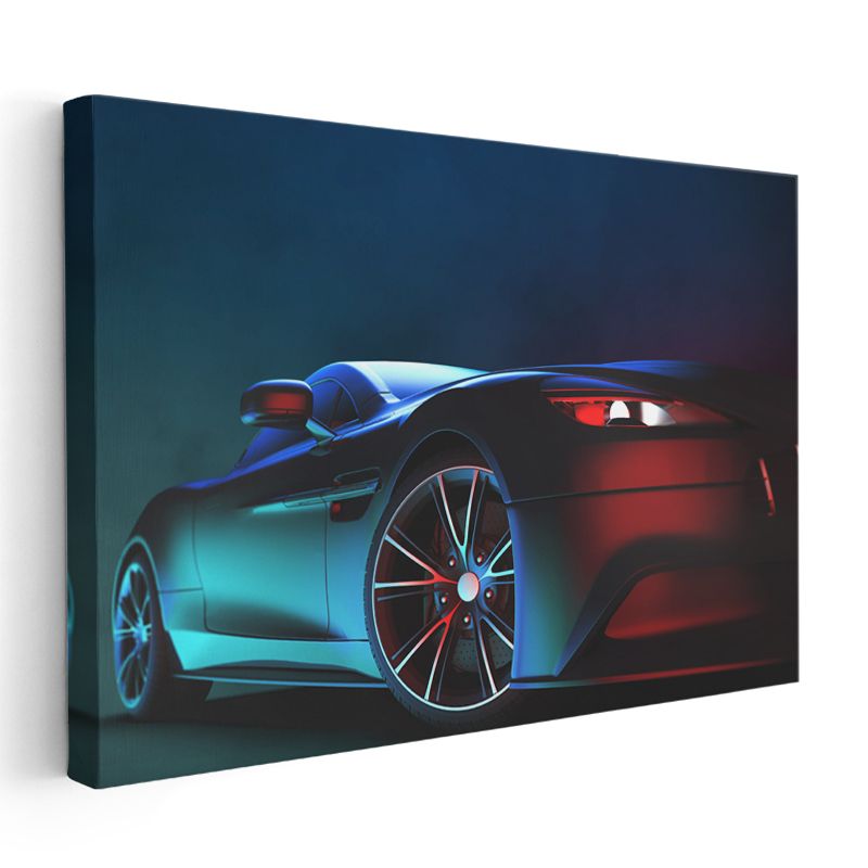 Spor Otomobil - Neon Işıklı Gece Tasarımı Kanvas Tablo