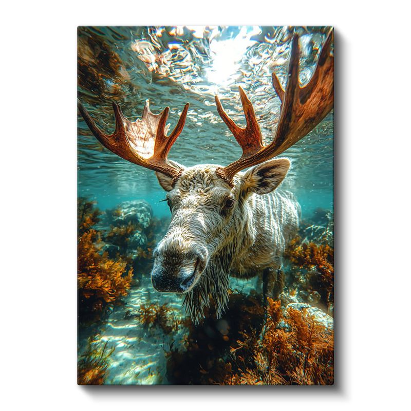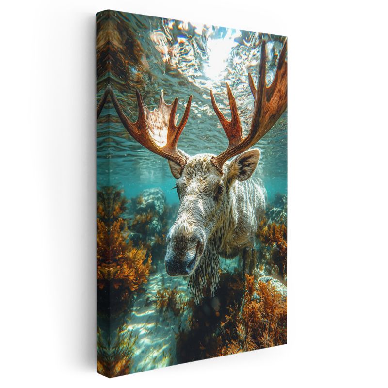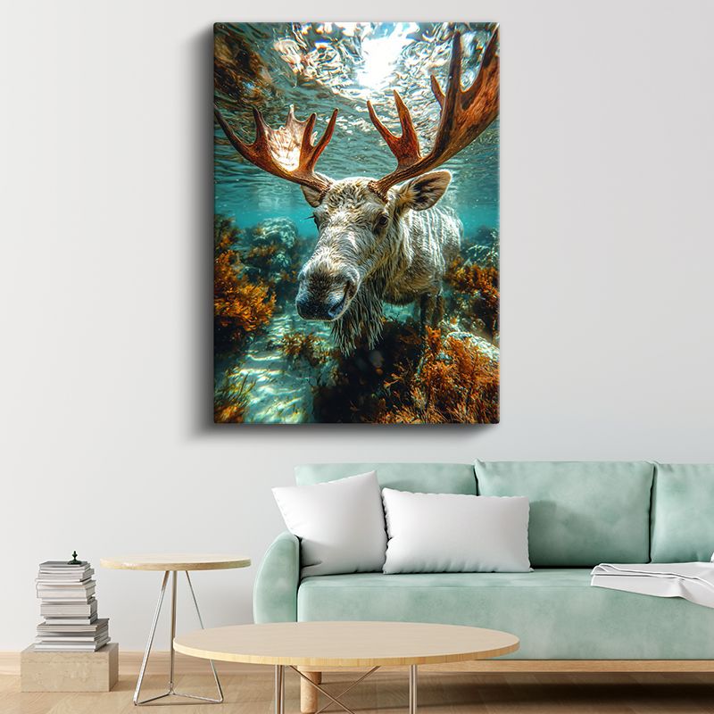 Su Altı Geyiği - Mercan Resiflerinde Yüzen Efsanevi Geyik Kanvas Tablo