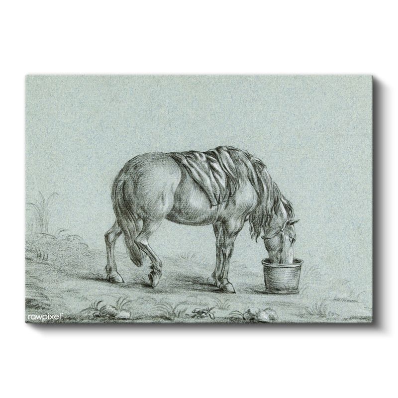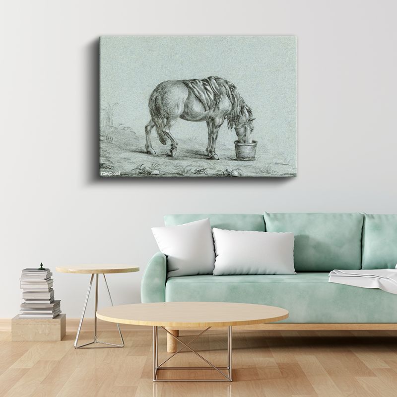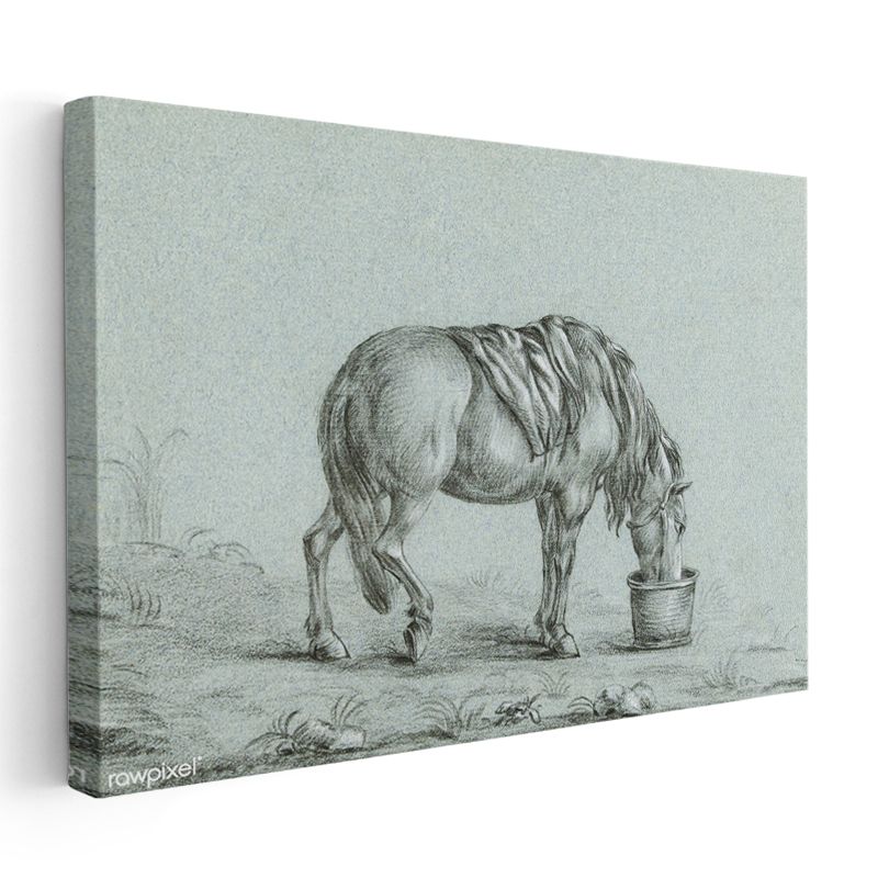 Su İçen At - Kovada Serinleyen Çiftlik Hayvanı Kanvas Tablo