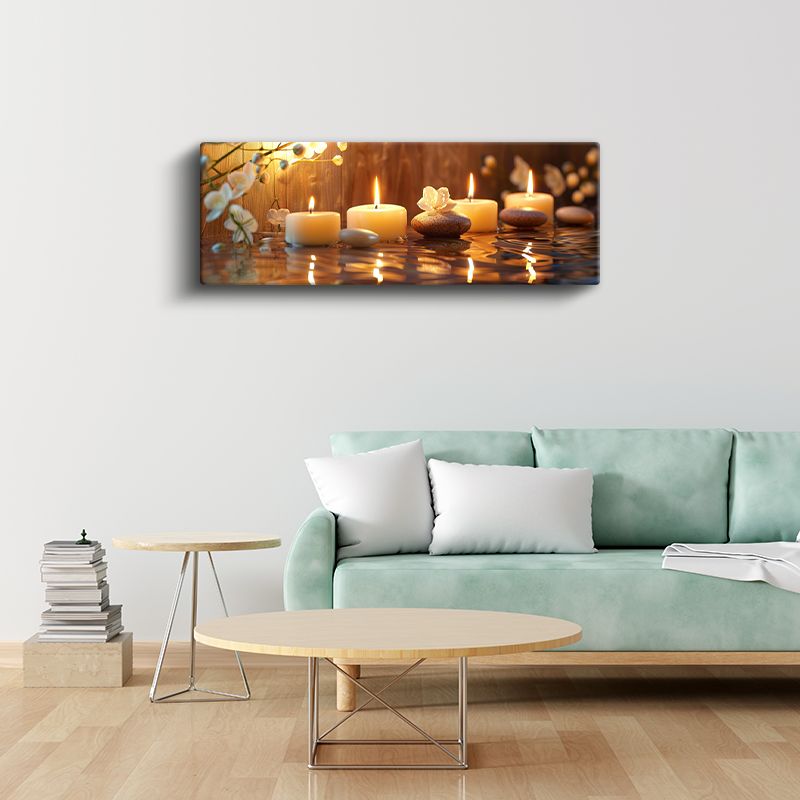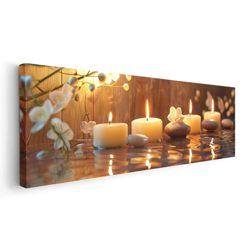 Su Yansımaları - Mumlar ve Çakıl Taşlarıyla Meditasyon Kanvas Tablo