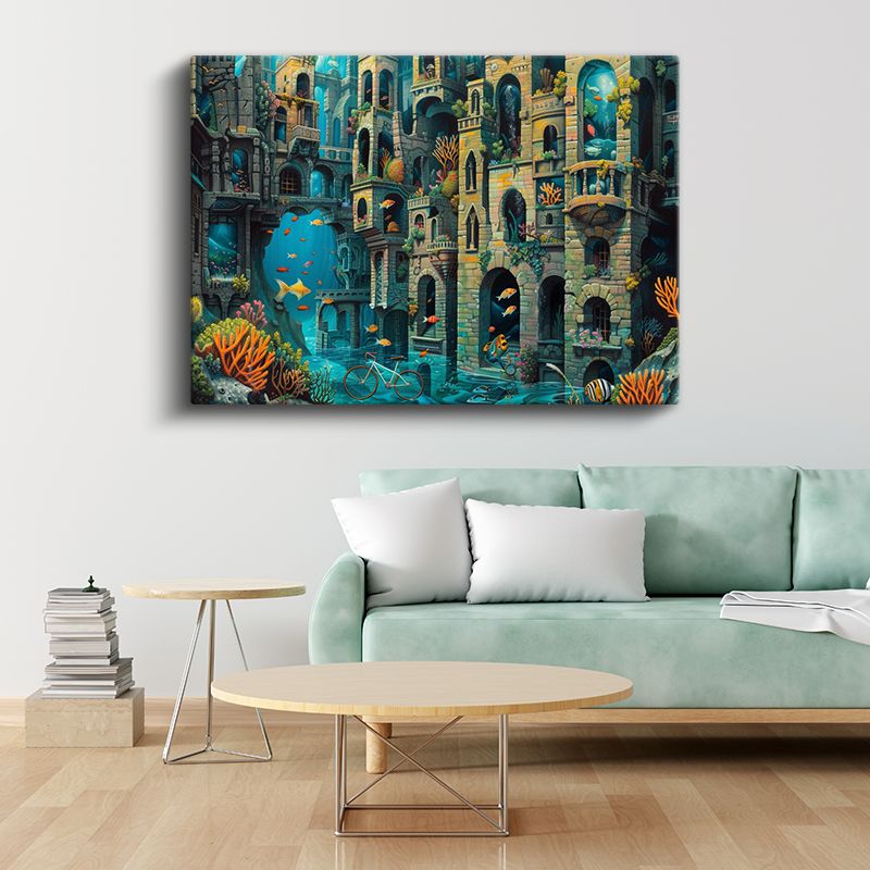 Sualtı Labirenti - Fantastik Denizaltı Mimarisi Kanvas Tablo
