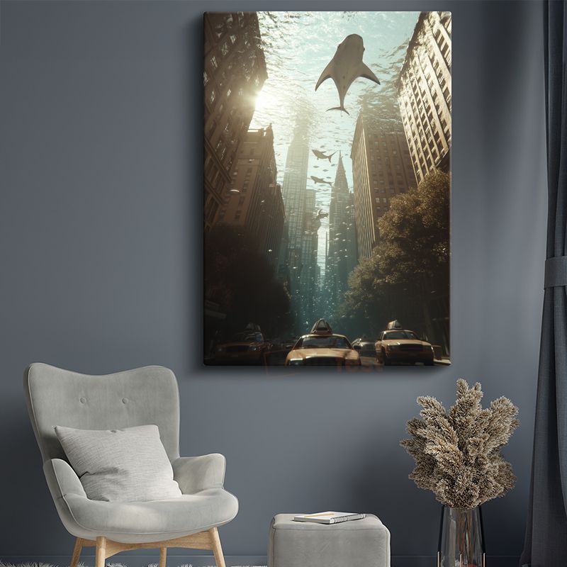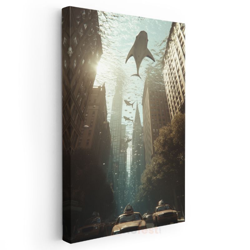 Sualtı Metropolü - Köpekbalıklarının Gezindiği Şehir Kanvas Tablo