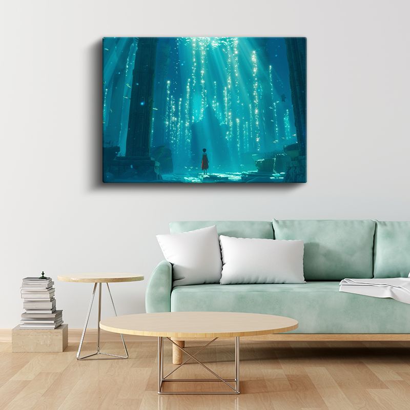Sualtı Tapınağı - Turkuaz Işınlar Anime Kanvas Tablo