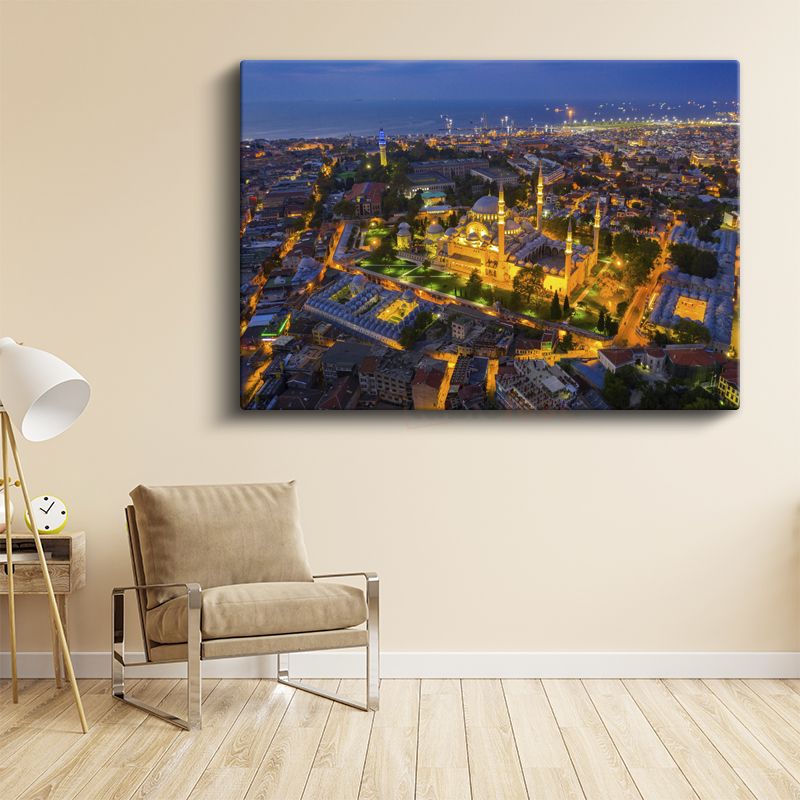 Sultanahmet Camii - Havadan Gece Görünümü Kanvas Tablo