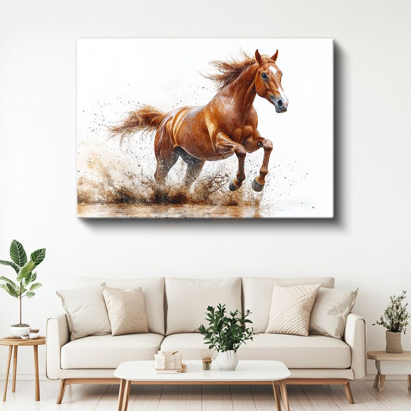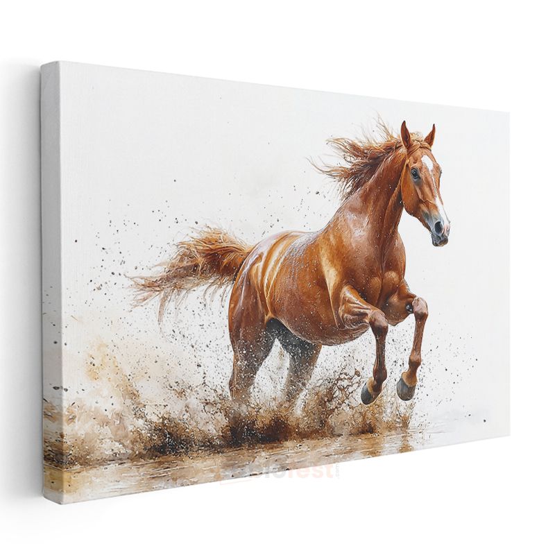 Suluboya At - Suda Koşan Kahverengi Güzellik Kanvas Tablo