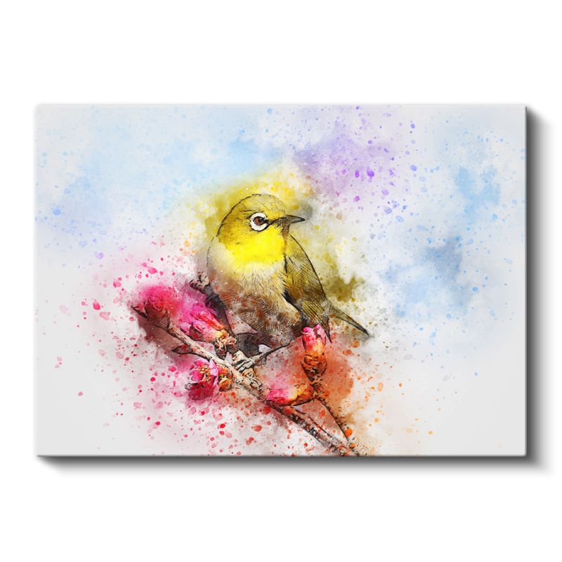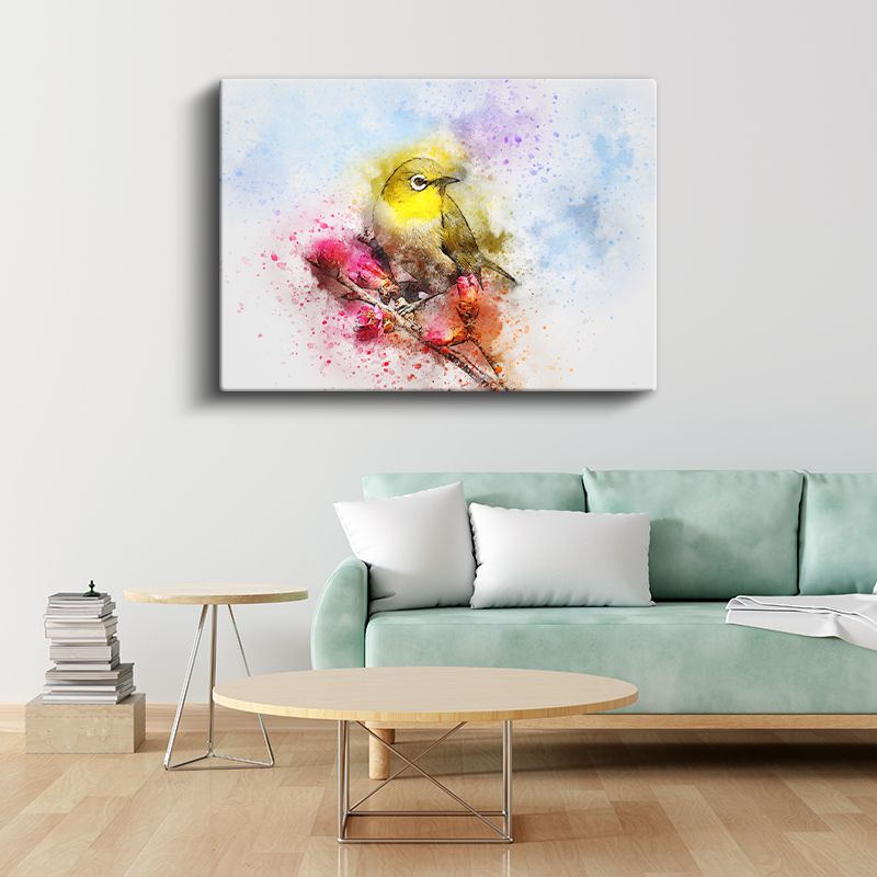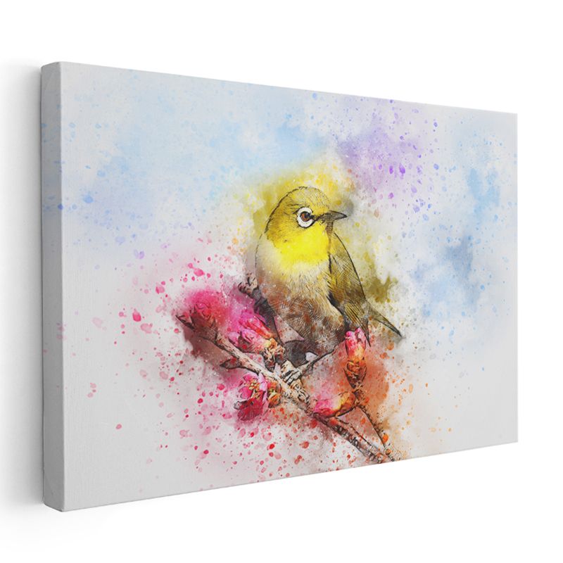 Suluboya Kuş - Sarı Tüylü Minik Şarkıcı Kanvas Tablo