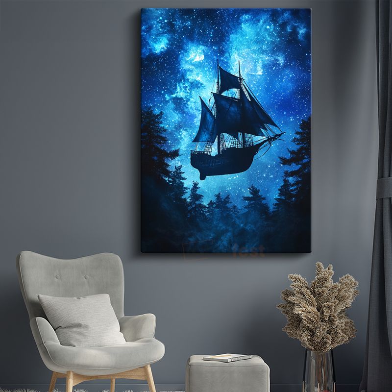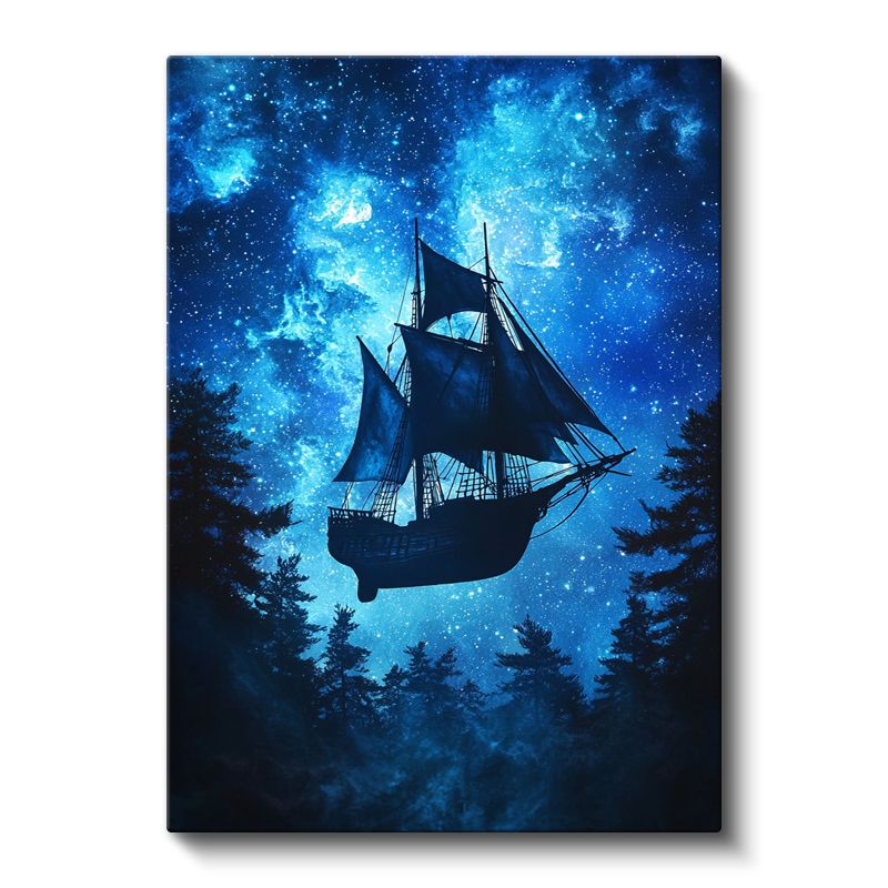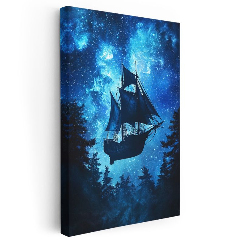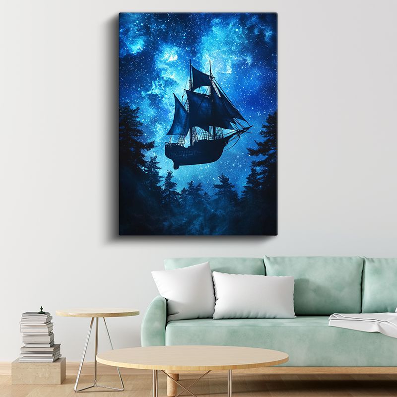 Sürreal Gemi - Yıldızlar Arasında Kanvas Tablo