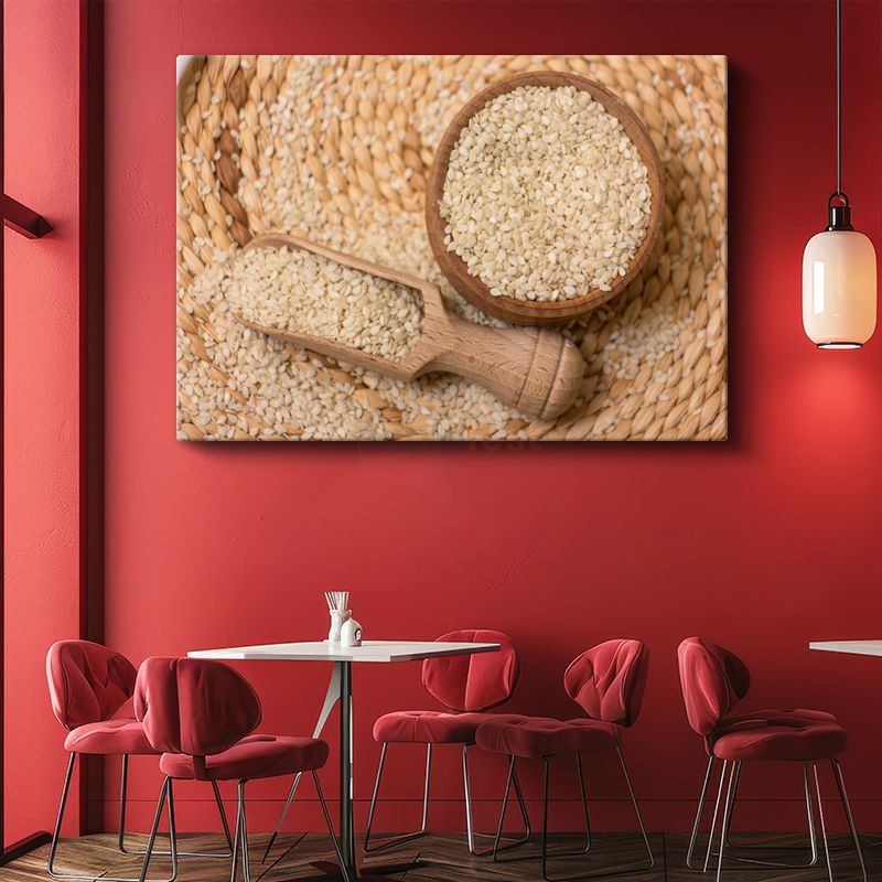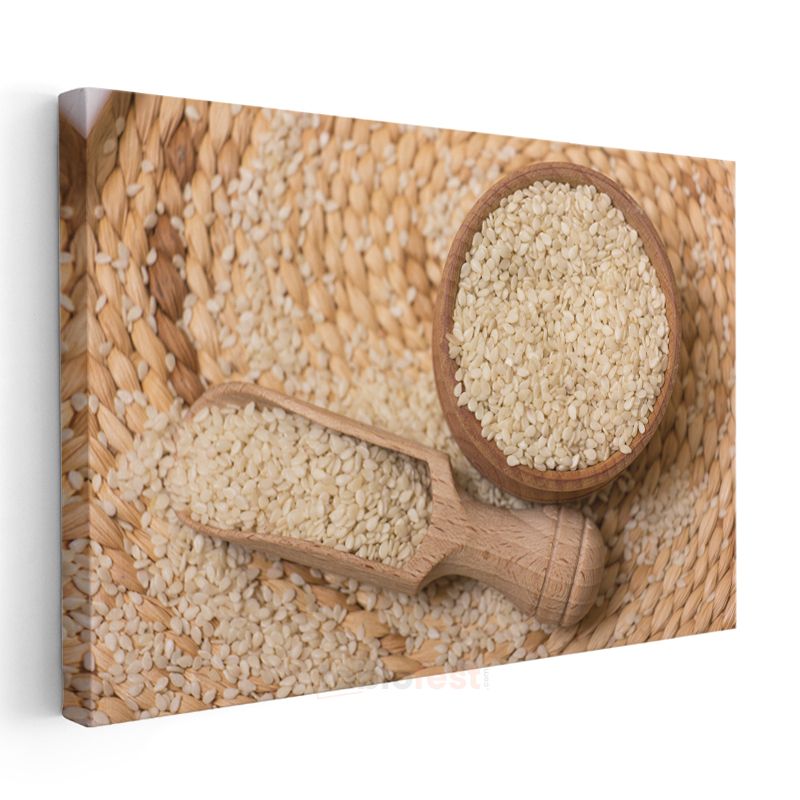 Susam Çeşitleri - Doğal Ahşap Kâse Kanvas Tablo
