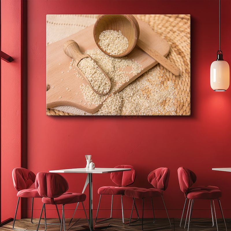 Susam Taneleri - Ahşap Sunum Kanvas Tablo