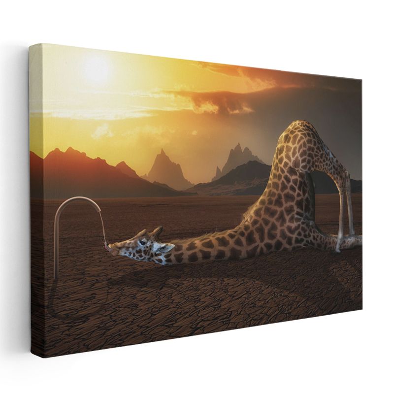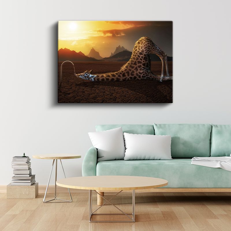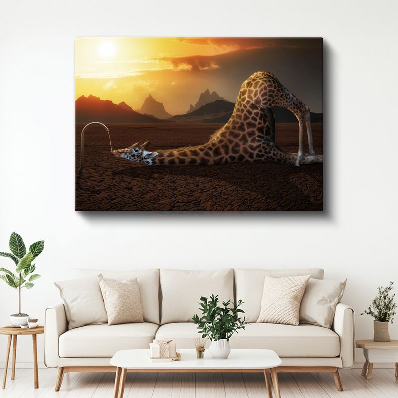 Susayan Zürafa - Gün Batımında Sürrealist Uzanış Kanvas Tablo